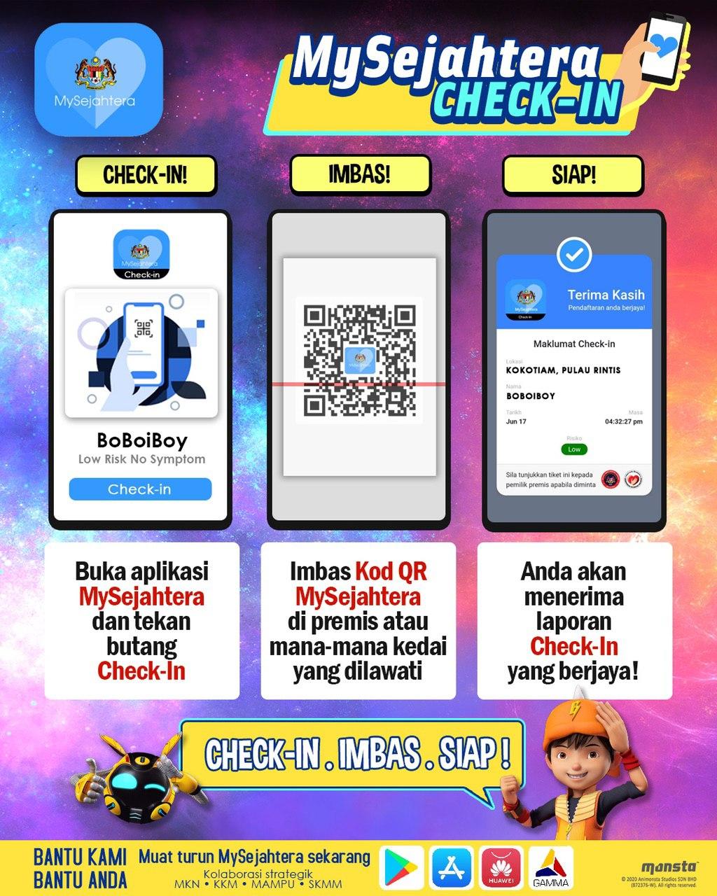 MySejahtera - Check-In , Imbas , Siap! Asrul Nasihat 03 July 2020 Hits: 1906 Rating: ( 0 Rating ) Please Rate Vote 1 Vote 2 Vote 3 Vote 4 Vote 5 Facebook Twitter Prev Next