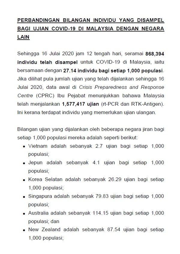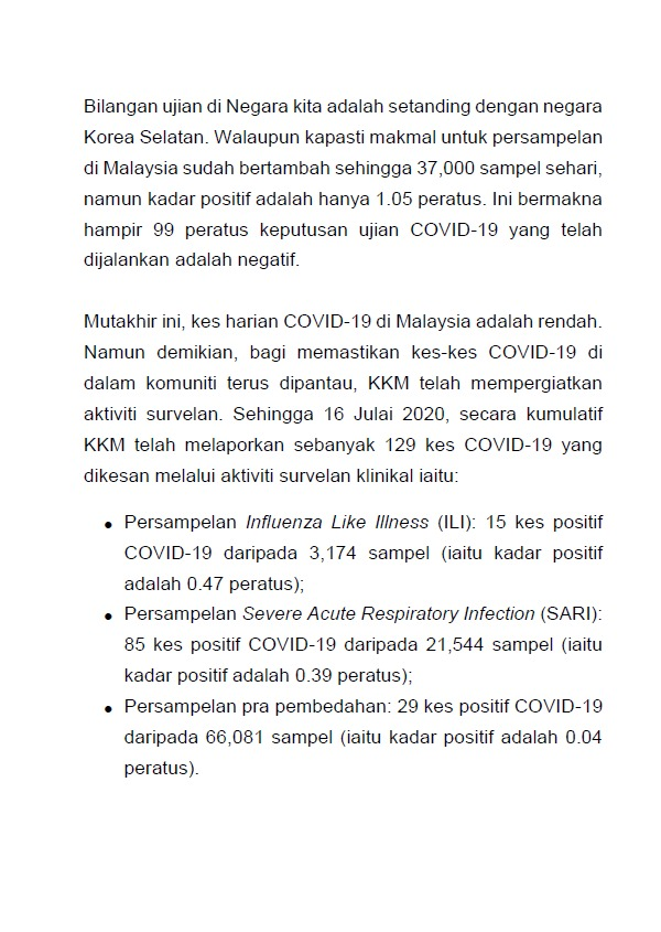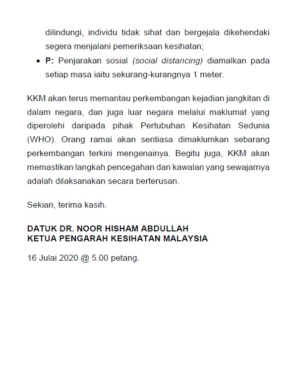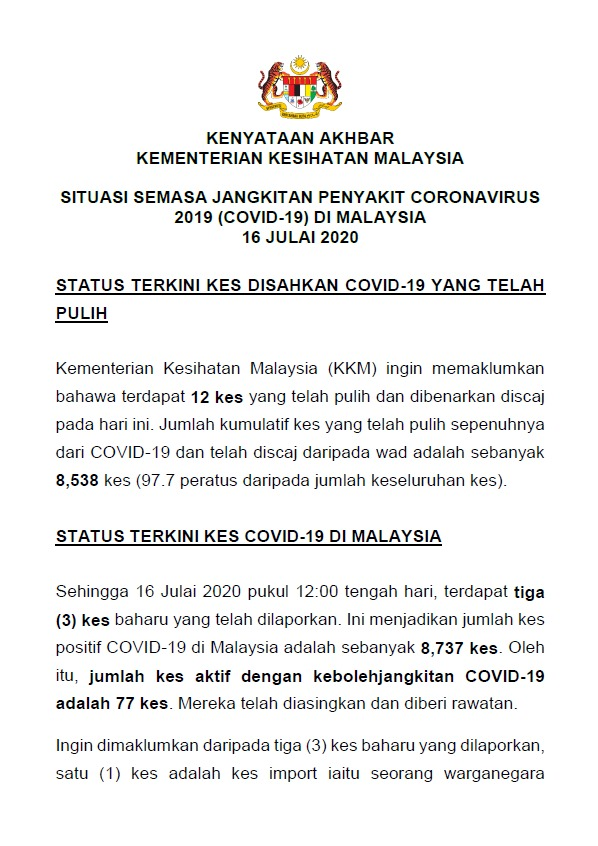 Kenyataan Media KP KKM 16/07/2020 0500 PM Asrul Siaran Media 16 July 2020 Hits: 666 Rating: ( 0 Rating ) Please Rate Vote 1 Vote 2 Vote 3 Vote 4 Vote 5 Facebook Twitter Prev Next