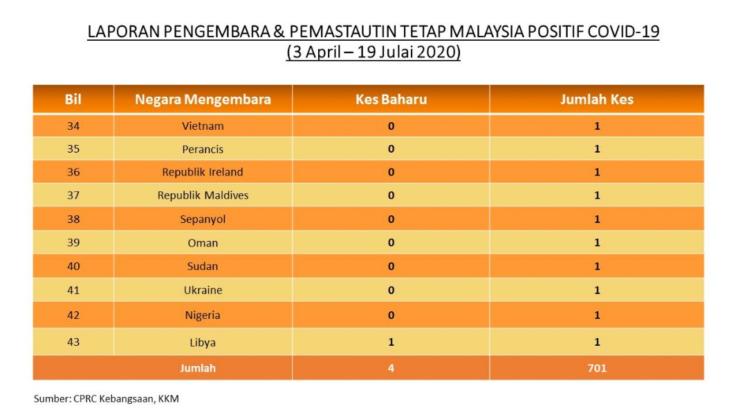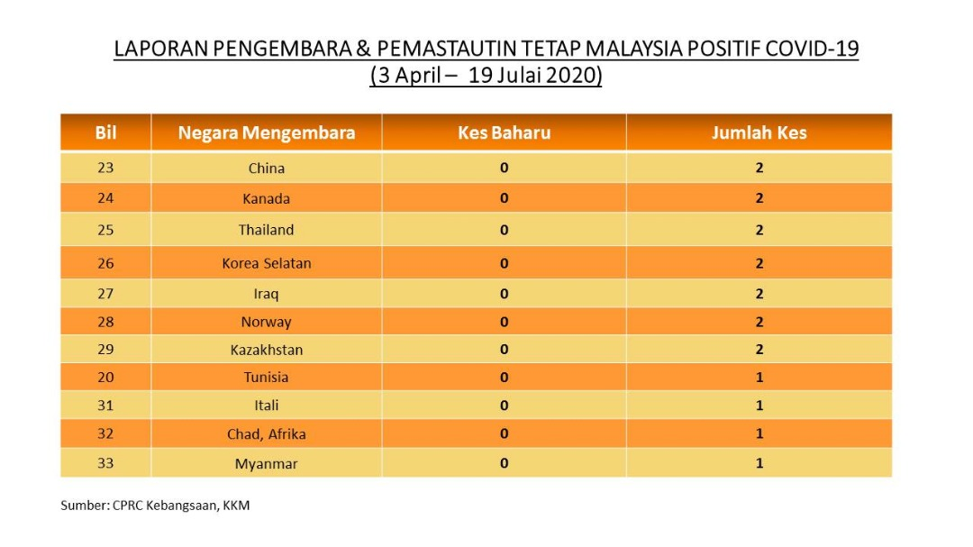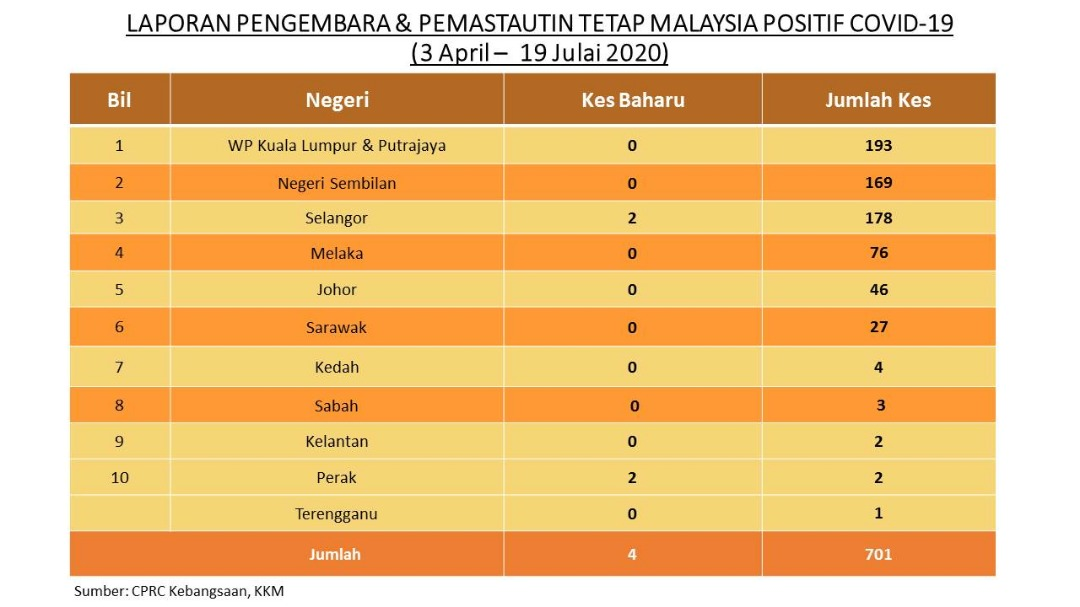 Laporan Pengembara & Pemastautin Tetap Malaysia Positif COVID-19 19/07/2020 Asrul Siaran Media 19 July 2020 Hits: 546 Rating: ( 0 Rating ) Please Rate Vote 1 Vote 2 Vote 3 Vote 4 Vote 5 Facebook Twitter Prev Next
