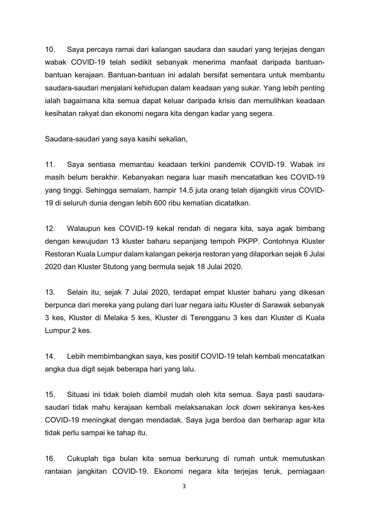 Perutusan Perkembangan Terkini PKPP Oleh Perdana Menteri Malaysia 20/07/2020 0400 PM Asrul Siaran Media 20 July 2020 Hits: 1353 Rating: ( 0 Rating ) Please Rate Vote 1 Vote 2 Vote 3 Vote 4 Vote 5 Lihat / Muat Turun PDF Facebook Twitter Prev Next