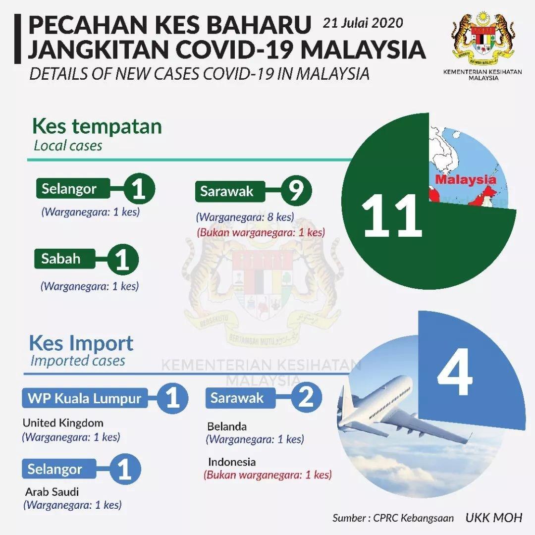 Statistik Pecahan Kes Baharu Jangkitan COVID-19 Malaysia 21/07/2020 Asrul Siaran Media 21 July 2020 Hits: 943 Rating: ( 0 Rating ) Please Rate Vote 1 Vote 2 Vote 3 Vote 4 Vote 5 Facebook Twitter Prev Next