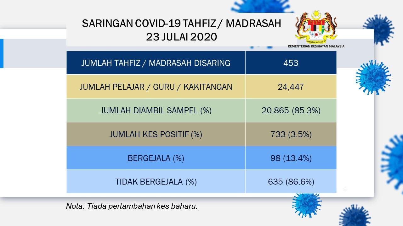 Laporan Saringan COVID-19 Di Madrasah/Tahfiz , Pasar & Pusat Jagaan Warga Emas 23/07/2020 Asrul Siaran Media 23 July 2020 Hits: 863 Rating: ( 0 Rating ) Please Rate Vote 1 Vote 2 Vote 3 Vote 4 Vote 5 Facebook Twitter Prev Next
