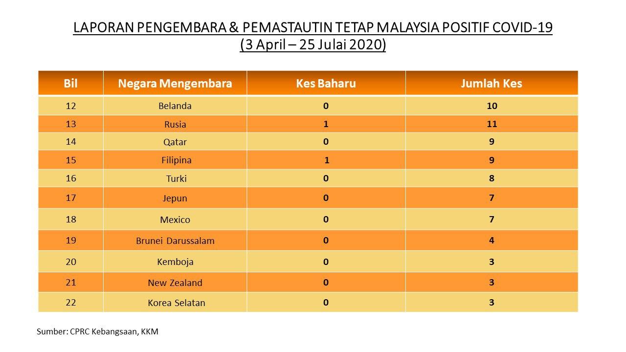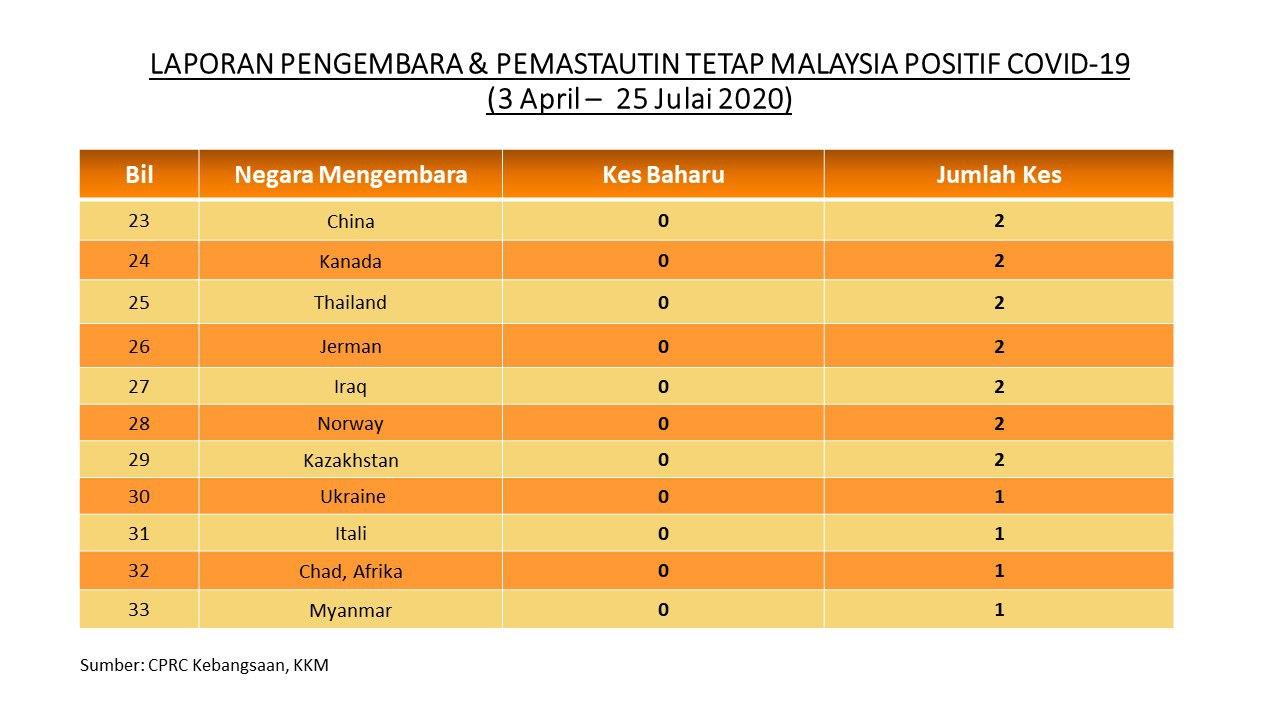 Laporan Pengembara & Pemastautin Tetap Malaysia Positif COVID-19 25/07/2020 Aiman Siaran Media 25 July 2020 Hits: 777 Rating: ( 0 Rating ) Please Rate Vote 1 Vote 2 Vote 3 Vote 4 Vote 5 Facebook Twitter Prev Next