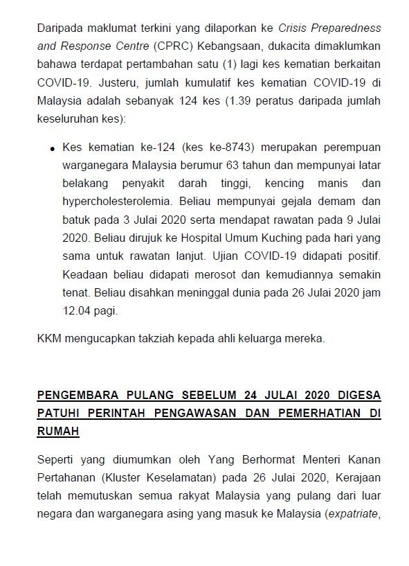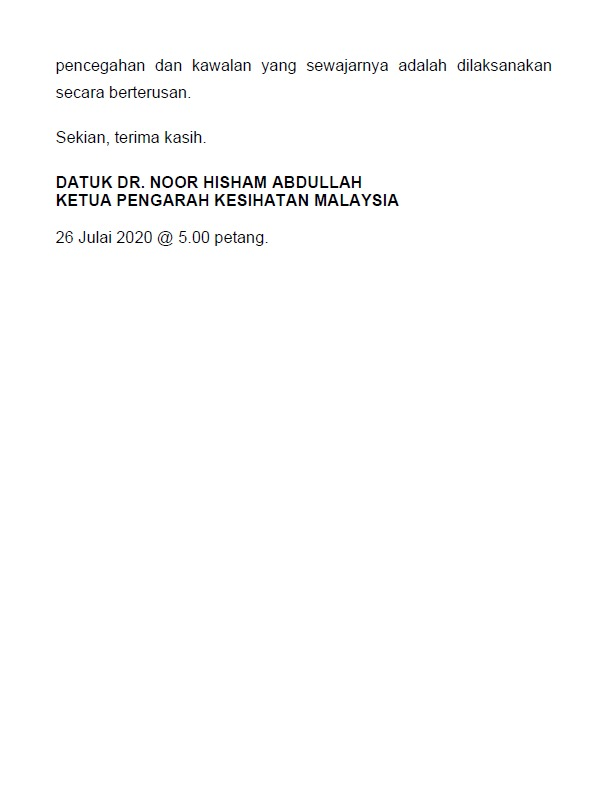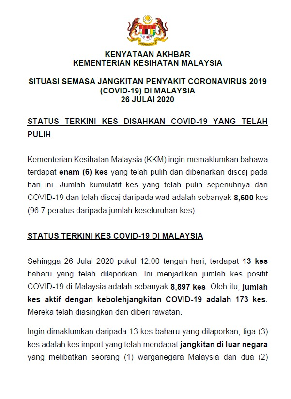 Kenyataan Media KP KKM 26/07/2020 0500 PM Asrul Siaran Media 26 July 2020 Hits: 652 Rating: ( 0 Rating ) Please Rate Vote 1 Vote 2 Vote 3 Vote 4 Vote 5 Facebook Twitter Prev Next