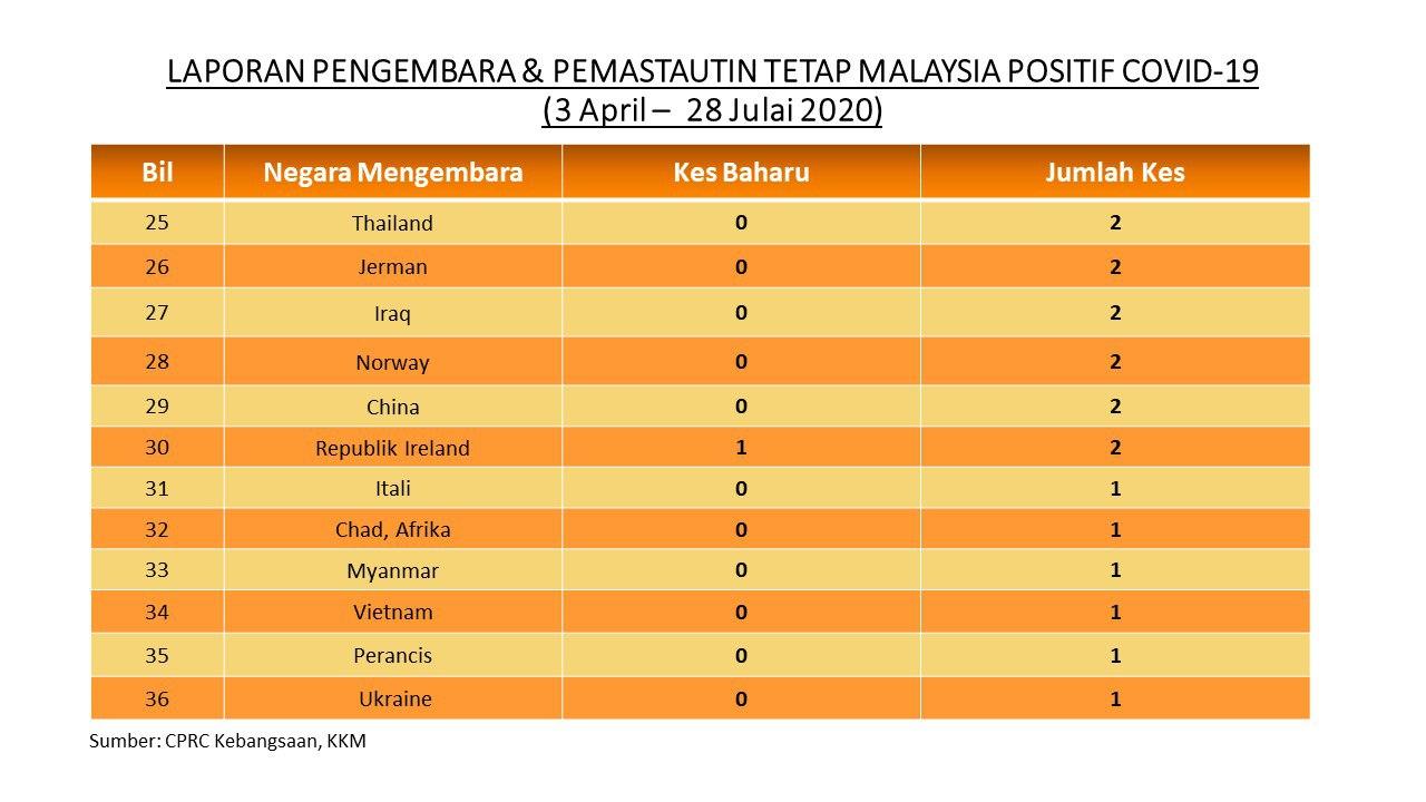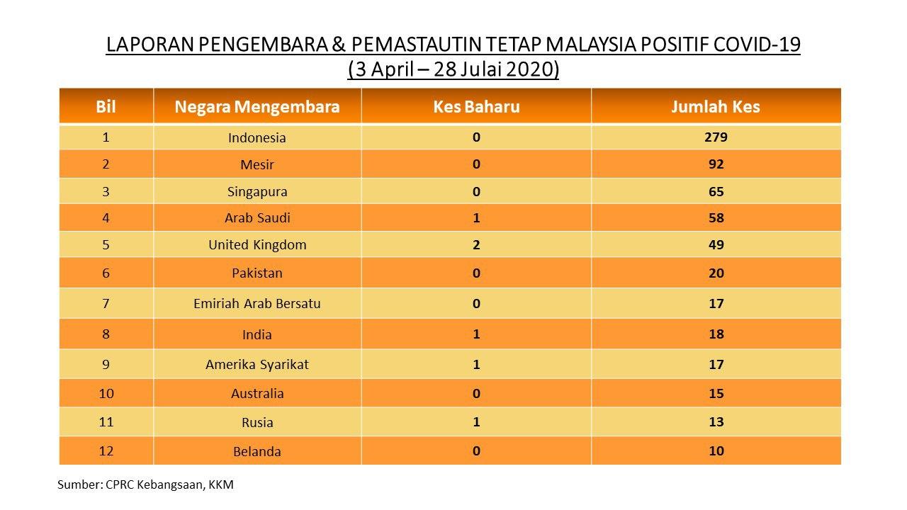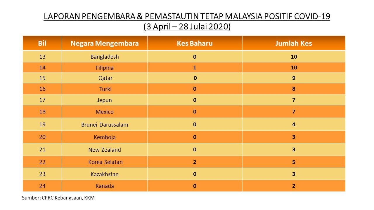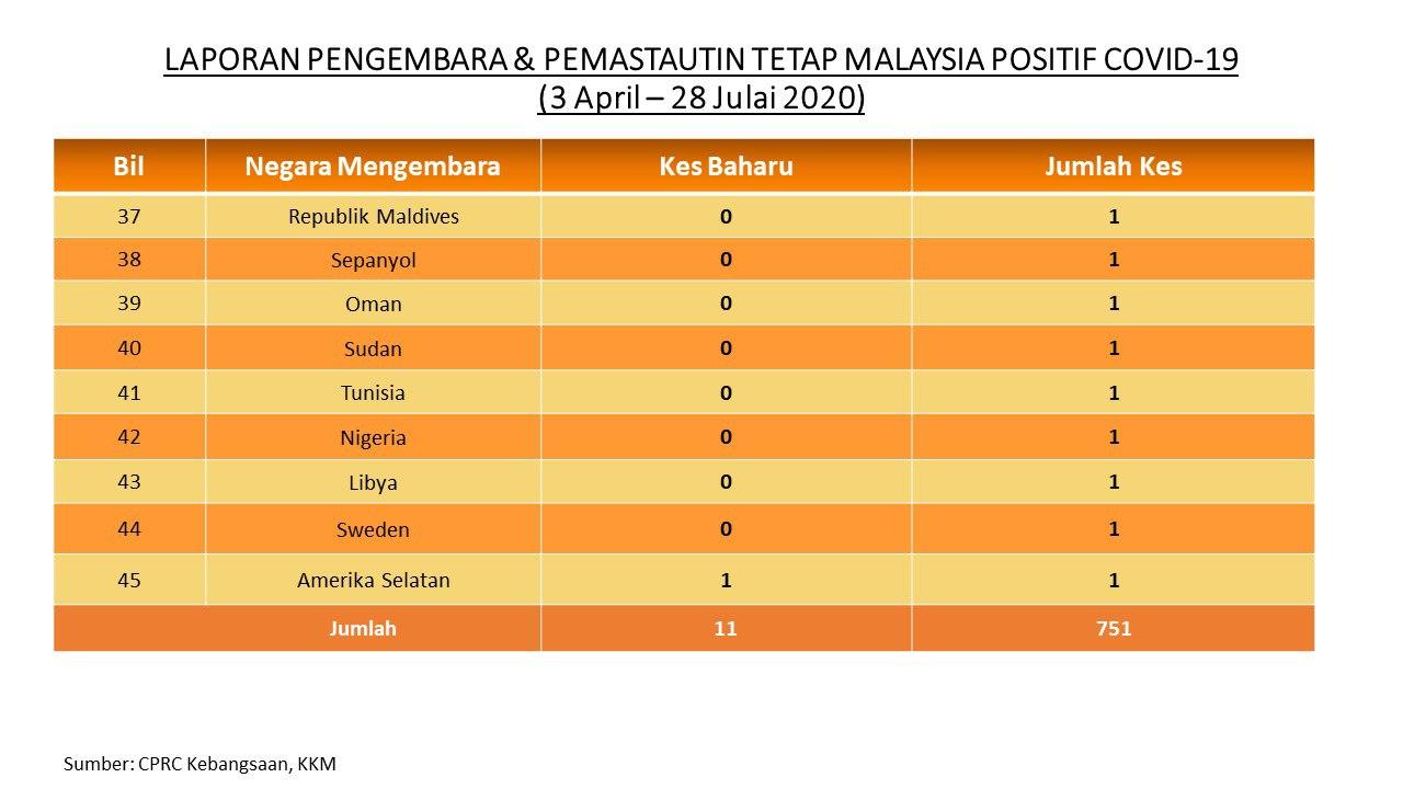 Laporan Pengembara & Pemastautin Tetap Malaysia Positif COVID-19 28/07/2020 Asrul Siaran Media 28 July 2020 Hits: 765 Rating: ( 0 Rating ) Please Rate Vote 1 Vote 2 Vote 3 Vote 4 Vote 5 Facebook Twitter Prev Next