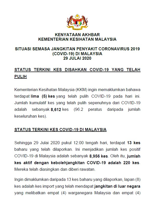 Kenyataan Media KP KKM 29/07/2020 0500 PM Asrul Siaran Media 29 July 2020 Hits: 878 Rating: ( 0 Rating ) Please Rate Vote 1 Vote 2 Vote 3 Vote 4 Vote 5 Facebook Twitter Prev Next