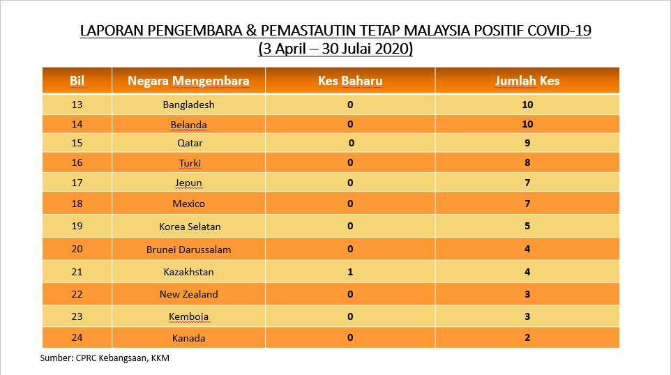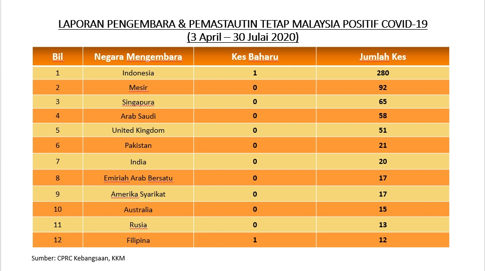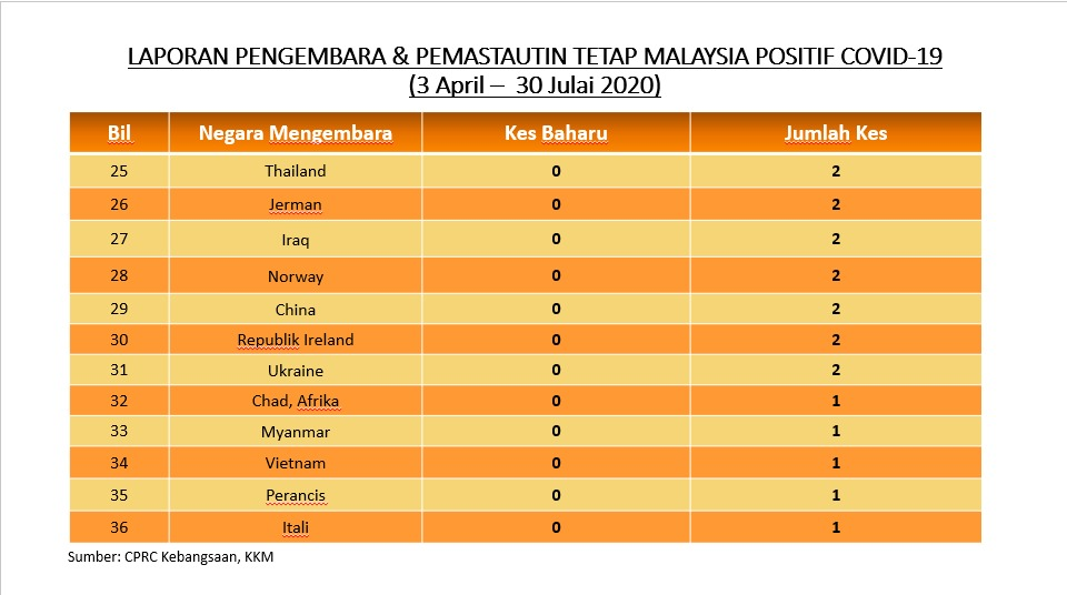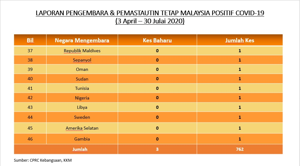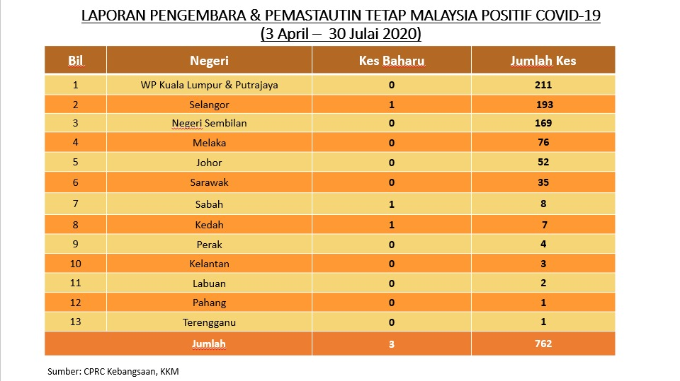 Laporan Pengembara & Pemastautin Tetap Malaysia Positif COVID-19 30/07/2020 Asrul Siaran Media 30 July 2020 Hits: 864 Rating: ( 0 Rating ) Please Rate Vote 1 Vote 2 Vote 3 Vote 4 Vote 5 Facebook Twitter Prev Next