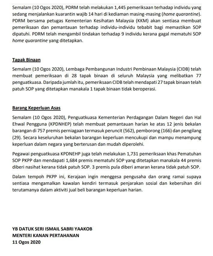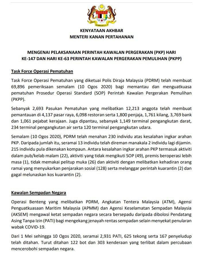 Kenyataan Akhbar Menteri Kanan Pertahanan 11/08/2020 0200 PM Asrul Siaran Media 11 August 2020 Hits: 838 Rating: ( 0 Rating ) Please Rate Vote 1 Vote 2 Vote 3 Vote 4 Vote 5 Facebook Twitter Prev Next