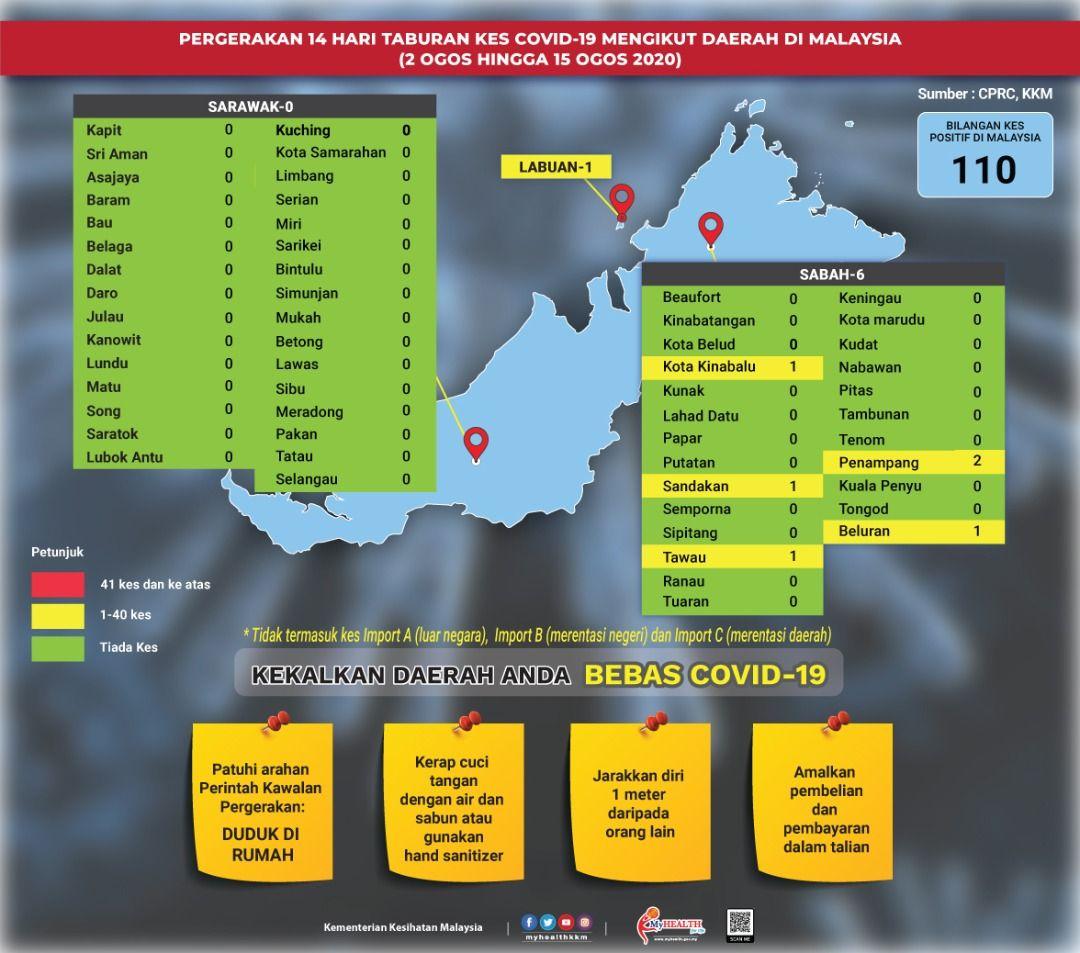 Pergerakan 14 Hari Taburan Kes COVID-19 Mengikut Daerah Di Malaysia 15/08/2020 Asrul Siaran Media 15 August 2020 Hits: 962 Rating: ( 0 Rating ) Please Rate Vote 1 Vote 2 Vote 3 Vote 4 Vote 5 Facebook Twitter Prev Next