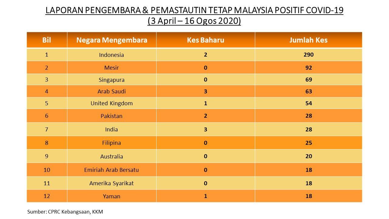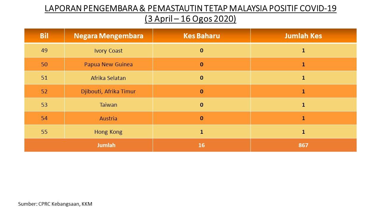Laporan Pengembara & Pemastautin Tetap Malaysia Positif COVID-19 16/08/2020 Asrul Siaran Media 16 August 2020 Hits: 980 Rating: ( 0 Rating ) Please Rate Vote 1 Vote 2 Vote 3 Vote 4 Vote 5 Facebook Twitter Prev Next