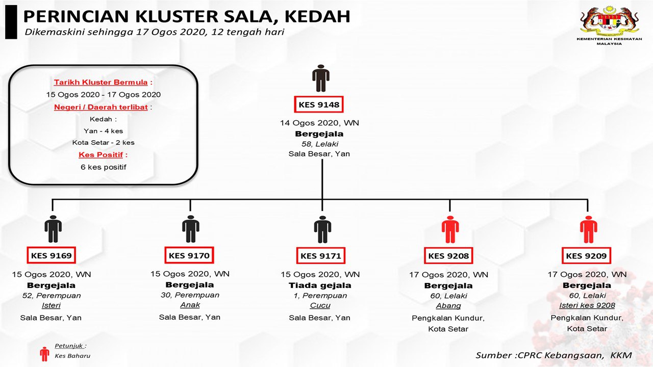 Perincian Kluster Sala , Kedah 17/08/2020 Aiman Siaran Media 17 August 2020 Hits: 694 Rating: ( 0 Rating ) Please Rate Vote 1 Vote 2 Vote 3 Vote 4 Vote 5 Facebook Twitter Prev Next