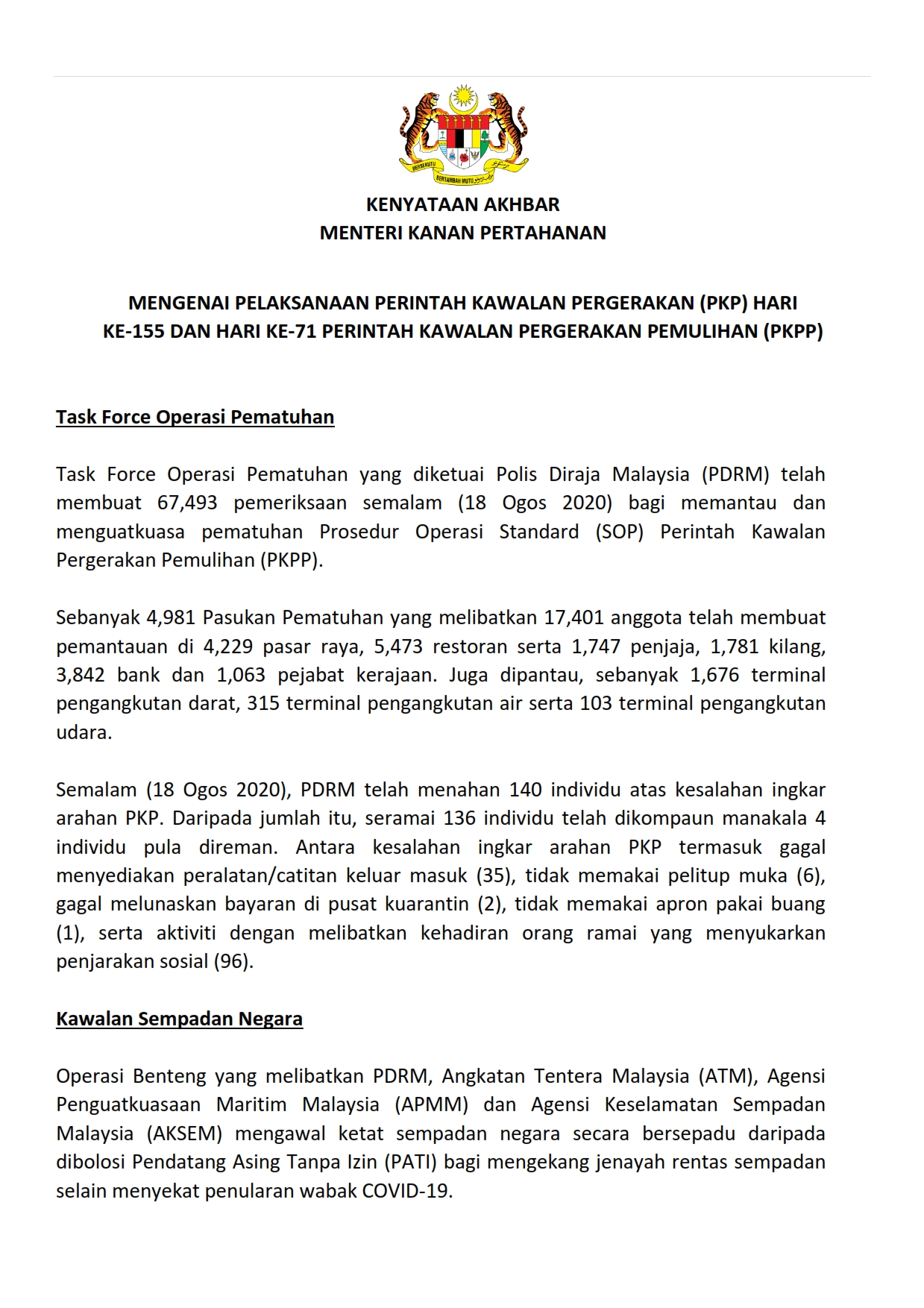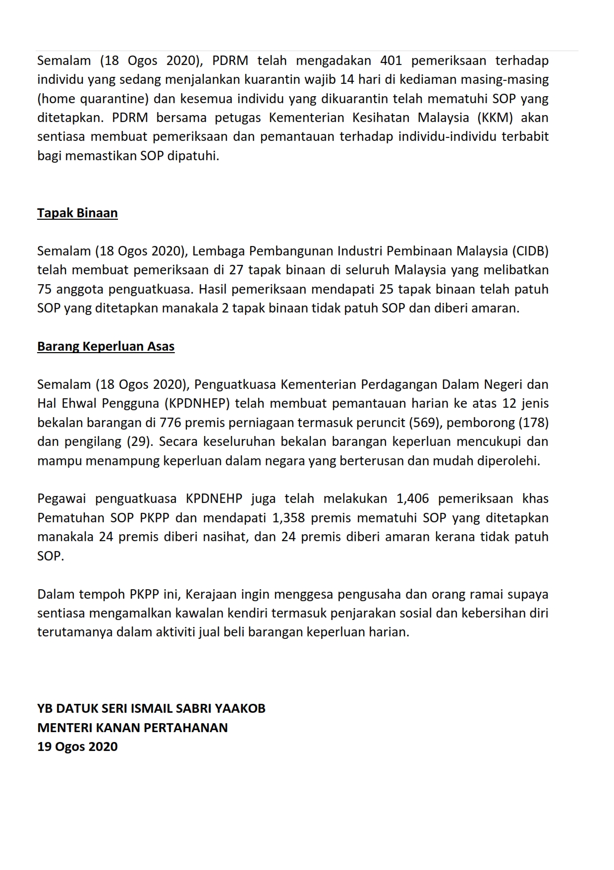 Kenyataan Akhbar Menteri Kanan Pertahanan 19/08/2020 0200 PM Aiman Siaran Media 19 August 2020 Hits: 814 Rating: ( 0 Rating ) Please Rate Vote 1 Vote 2 Vote 3 Vote 4 Vote 5 Facebook Twitter Prev Next