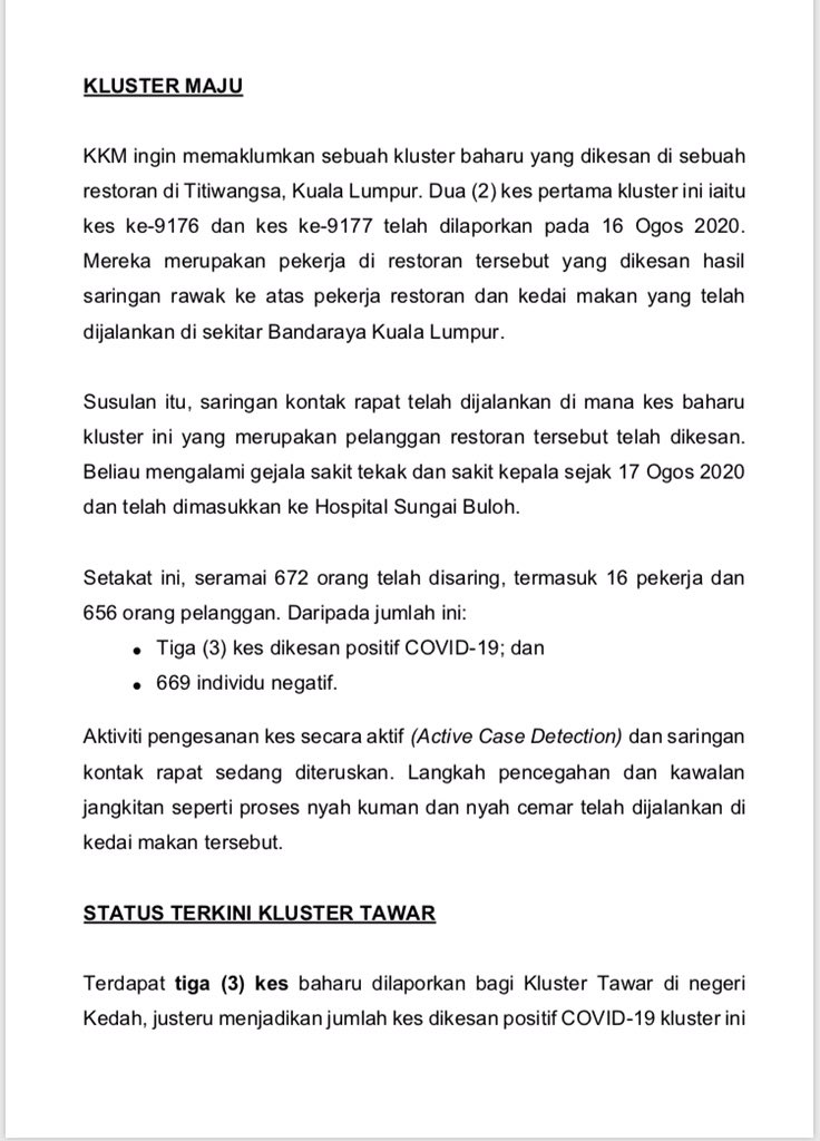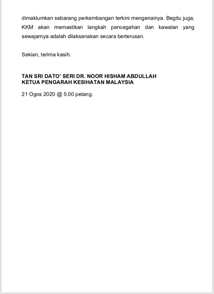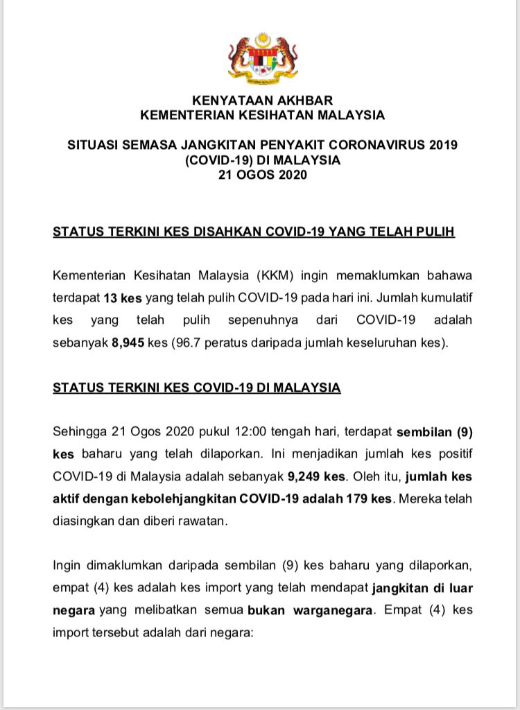 Kenyataan Media KP KKM 21/08/2020 0500 PM Asrul Siaran Media 21 August 2020 Hits: 566 Rating: ( 0 Rating ) Please Rate Vote 1 Vote 2 Vote 3 Vote 4 Vote 5 Facebook Twitter Prev Next