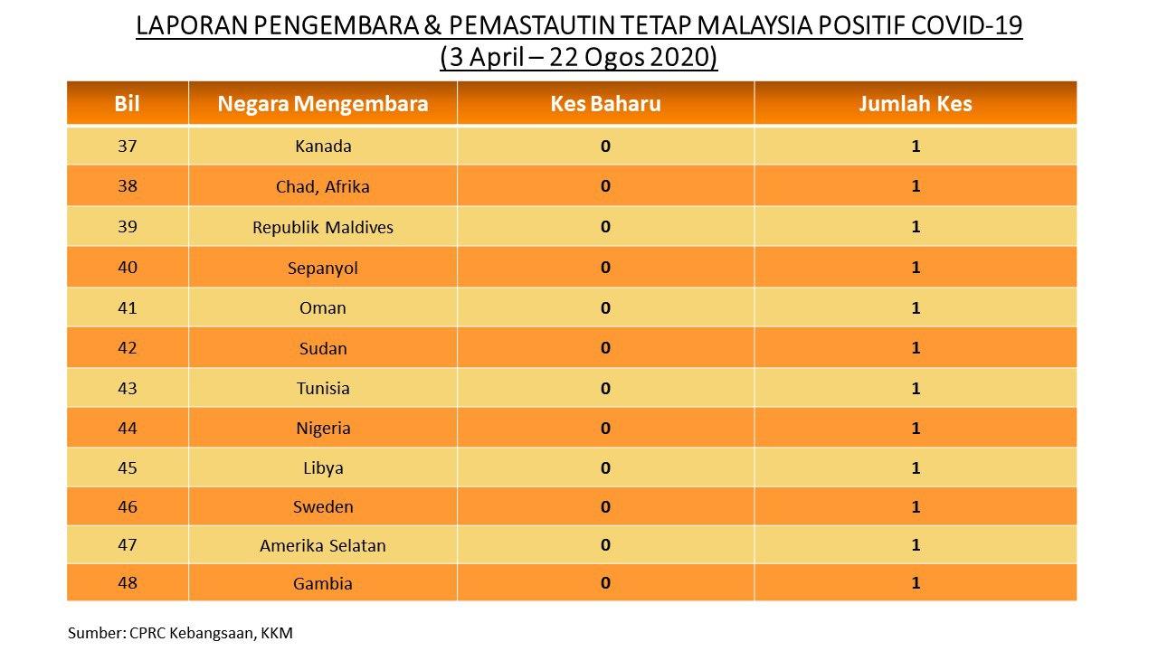Laporan Pengembara & Pemastautin Tetap Malaysia Positif COVID-19 22/08/2020 Asrul Siaran Media 22 August 2020 Hits: 662 Rating: ( 0 Rating ) Please Rate Vote 1 Vote 2 Vote 3 Vote 4 Vote 5 Facebook Twitter Prev Next
