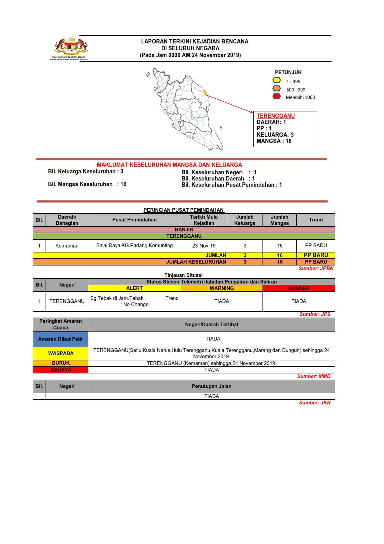 Print Laporan Situasi Bencana 24/11/2019 Jam 1200 AM Asrul Laporan Situasi 24 November 2019 Muat Turun PDF Muat Turun JPG Facebook Twitter Prev Next