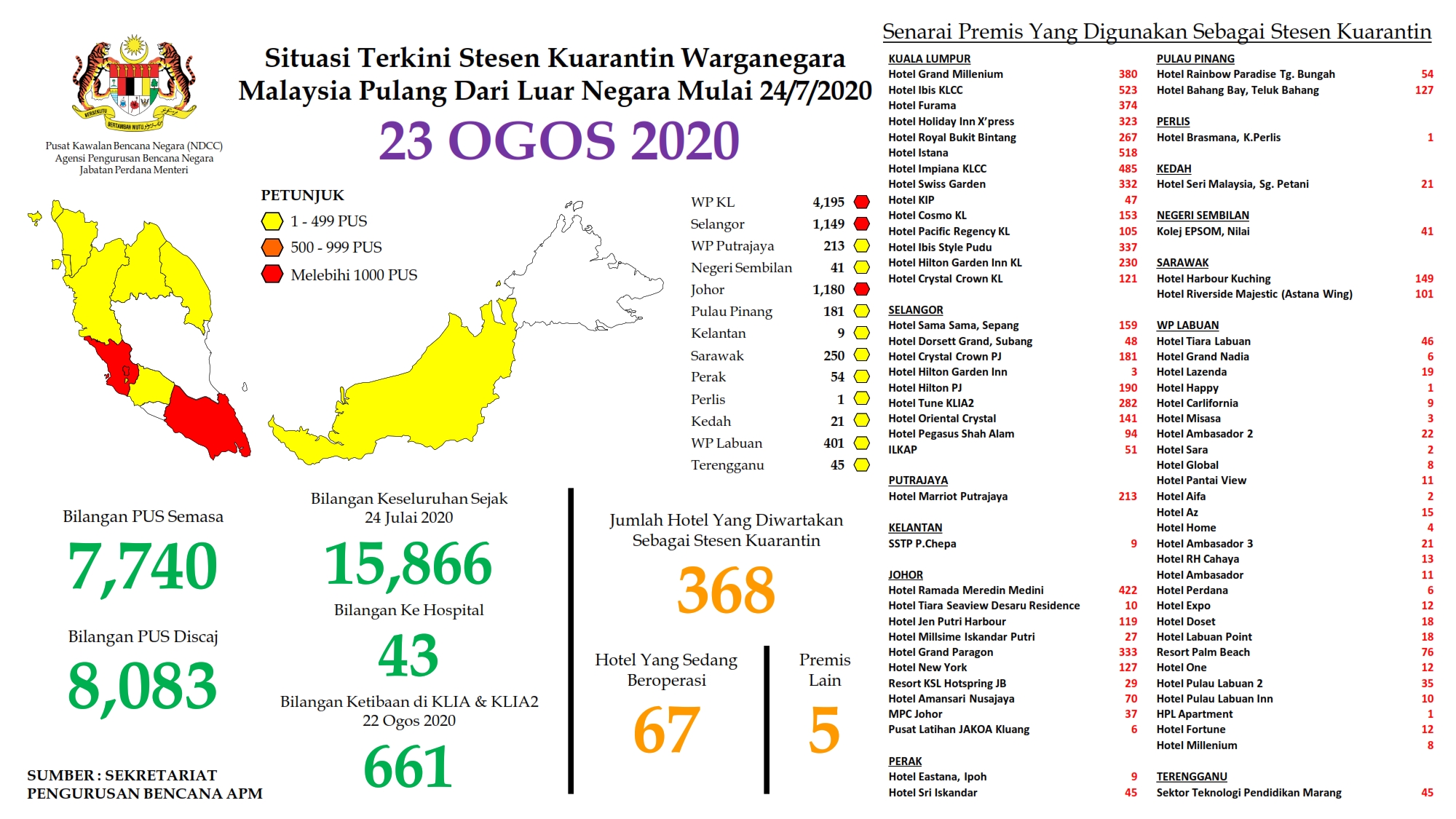 Situasi Terkini Stesen Kuarantin Warganegara Malaysia Pulang Dari Luar Negara 23/08/2020 Aiman Siaran Media 23 August 2020 Hits: 709 Rating: ( 0 Rating ) Please Rate Vote 1 Vote 2 Vote 3 Vote 4 Vote 5 Lihat / Muat Turun PDF Facebook Twitter Prev Next