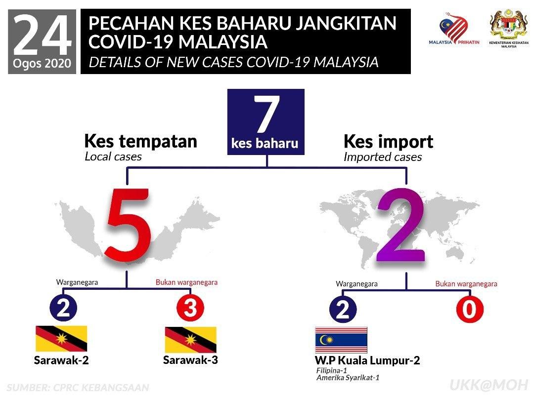 Statistik Pecahan Kes Baharu Jangkitan COVID-19 Malaysia 24/08/2020 Aiman Siaran Media 24 August 2020 Hits: 648 Rating: ( 0 Rating ) Please Rate Vote 1 Vote 2 Vote 3 Vote 4 Vote 5 Facebook Twitter Prev Next