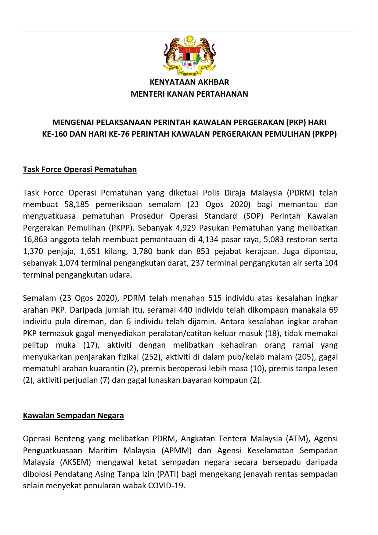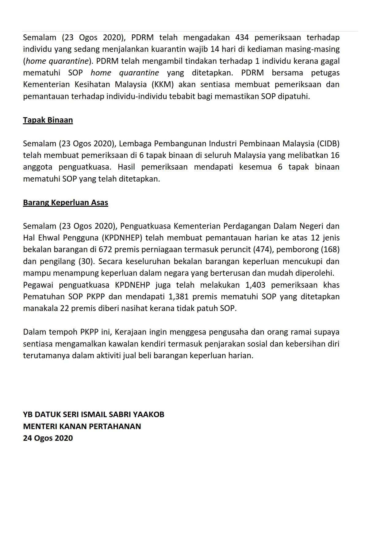 Kenyataan Akhbar Menteri Kanan Pertahanan 24/08/2020 0200 PM Aiman Siaran Media 24 August 2020 Hits: 874 Rating: ( 0 Rating ) Please Rate Vote 1 Vote 2 Vote 3 Vote 4 Vote 5 Facebook Twitter Prev Next