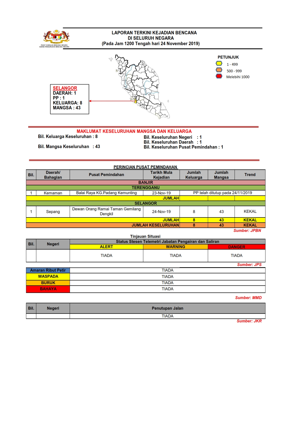 Print Laporan Situasi Bencana 24/11/2019 Jam 1200 PM Asrul Laporan Situasi 24 November 2019 Muat Turun PDF Muat Turun JPG Facebook Twitter Prev Next