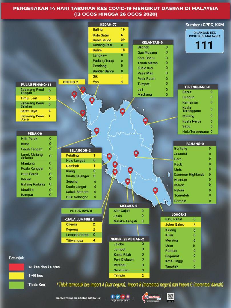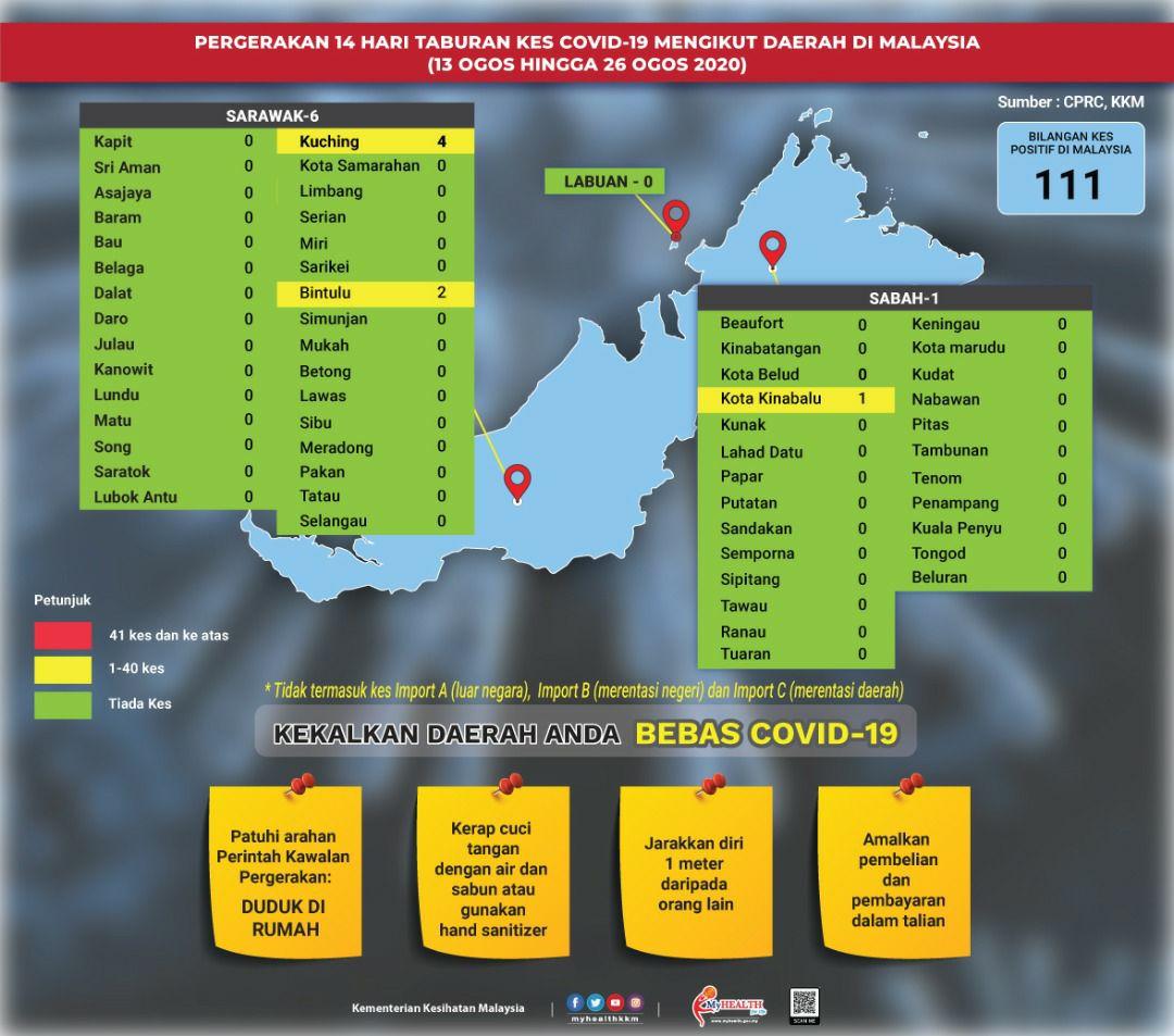 Pergerakan 14 Hari Taburan Kes COVID-19 Mengikut Daerah Di Malaysia 26/08/2020 Asrul Siaran Media 26 August 2020 Hits: 805 Rating: ( 0 Rating ) Please Rate Vote 1 Vote 2 Vote 3 Vote 4 Vote 5 Facebook Twitter Prev Next