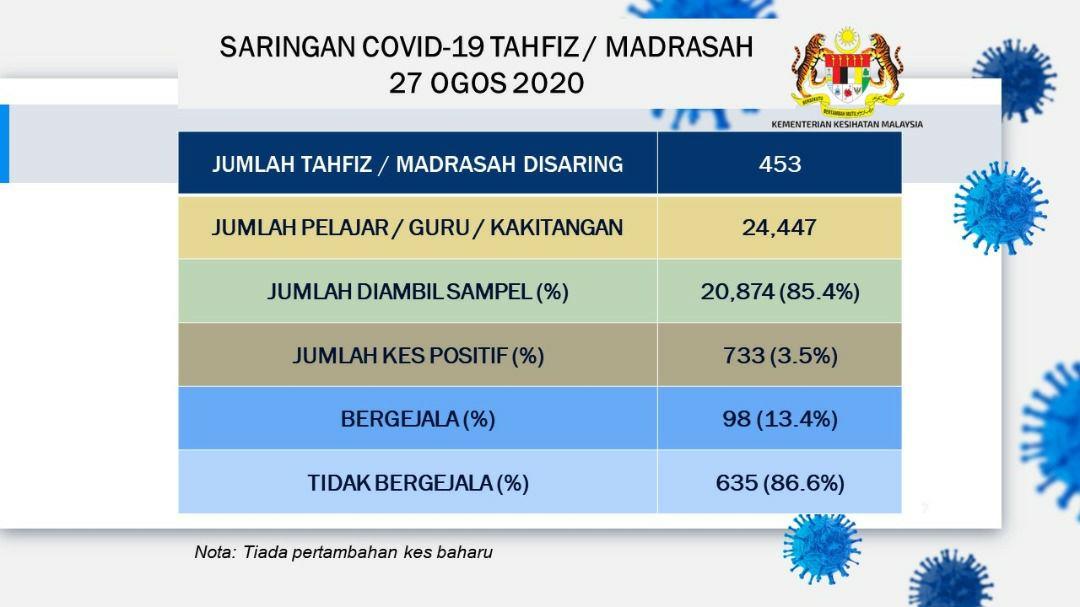 Laporan Saringan COVID-19 Di Madrasah/Tahfiz , Pasar & Pusat Jagaan Warga Emas 27/08/2020 Asrul Siaran Media 27 August 2020 Hits: 1001 Rating: ( 0 Rating ) Please Rate Vote 1 Vote 2 Vote 3 Vote 4 Vote 5 Facebook Twitter Prev Next
