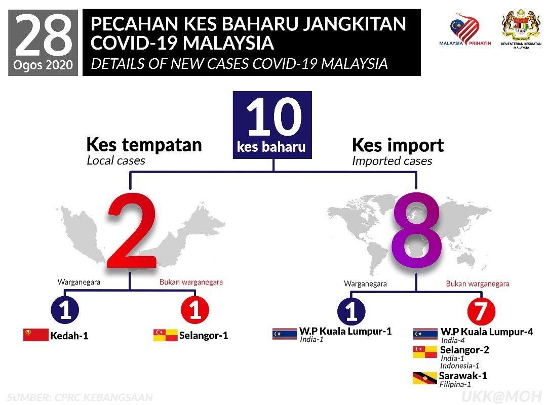 Statistik Pecahan Kes Baharu Jangkitan COVID-19 Malaysia 28/08/2020 Asrul Siaran Media 28 August 2020 Hits: 735 Rating: ( 0 Rating ) Please Rate Vote 1 Vote 2 Vote 3 Vote 4 Vote 5 Facebook Twitter Prev Next