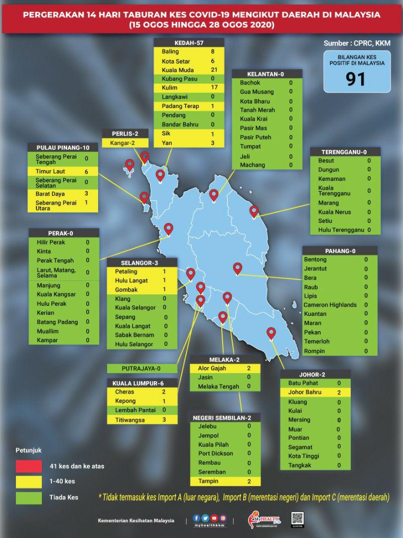 Pergerakan 14 Hari Taburan Kes COVID-19 Mengikut Daerah Di Malaysia 28/08/2020 Asrul Siaran Media 28 August 2020 Hits: 1030 Rating: ( 0 Rating ) Please Rate Vote 1 Vote 2 Vote 3 Vote 4 Vote 5 Facebook Twitter Prev Next