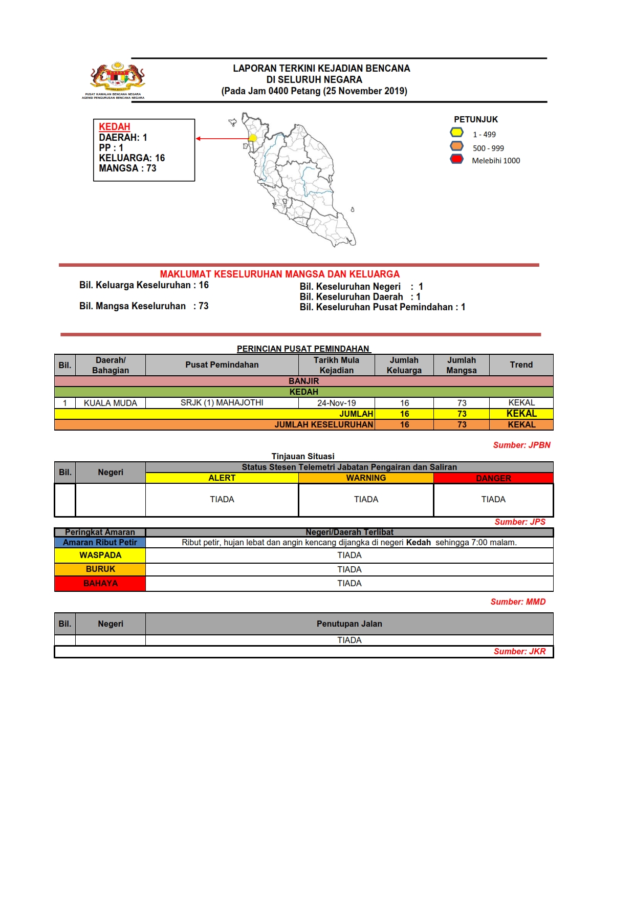 Print Laporan Situasi Bencana 25/11/2019 Jam 0400 PM Asrul Laporan Situasi 25 November 2019 Muat Turun PDF Muat Turun JPG Facebook Twitter Prev Next