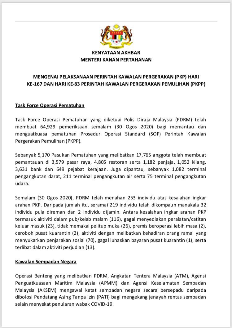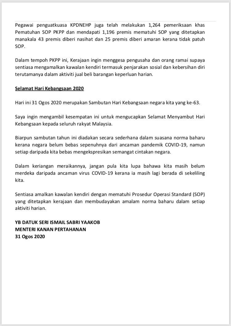 Kenyataan Akhbar Menteri Kanan Pertahanan 31/08/2020 0200 PM Asrul Siaran Media 31 August 2020 Hits: 943 Rating: ( 0 Rating ) Please Rate Vote 1 Vote 2 Vote 3 Vote 4 Vote 5 Facebook Twitter Prev Next