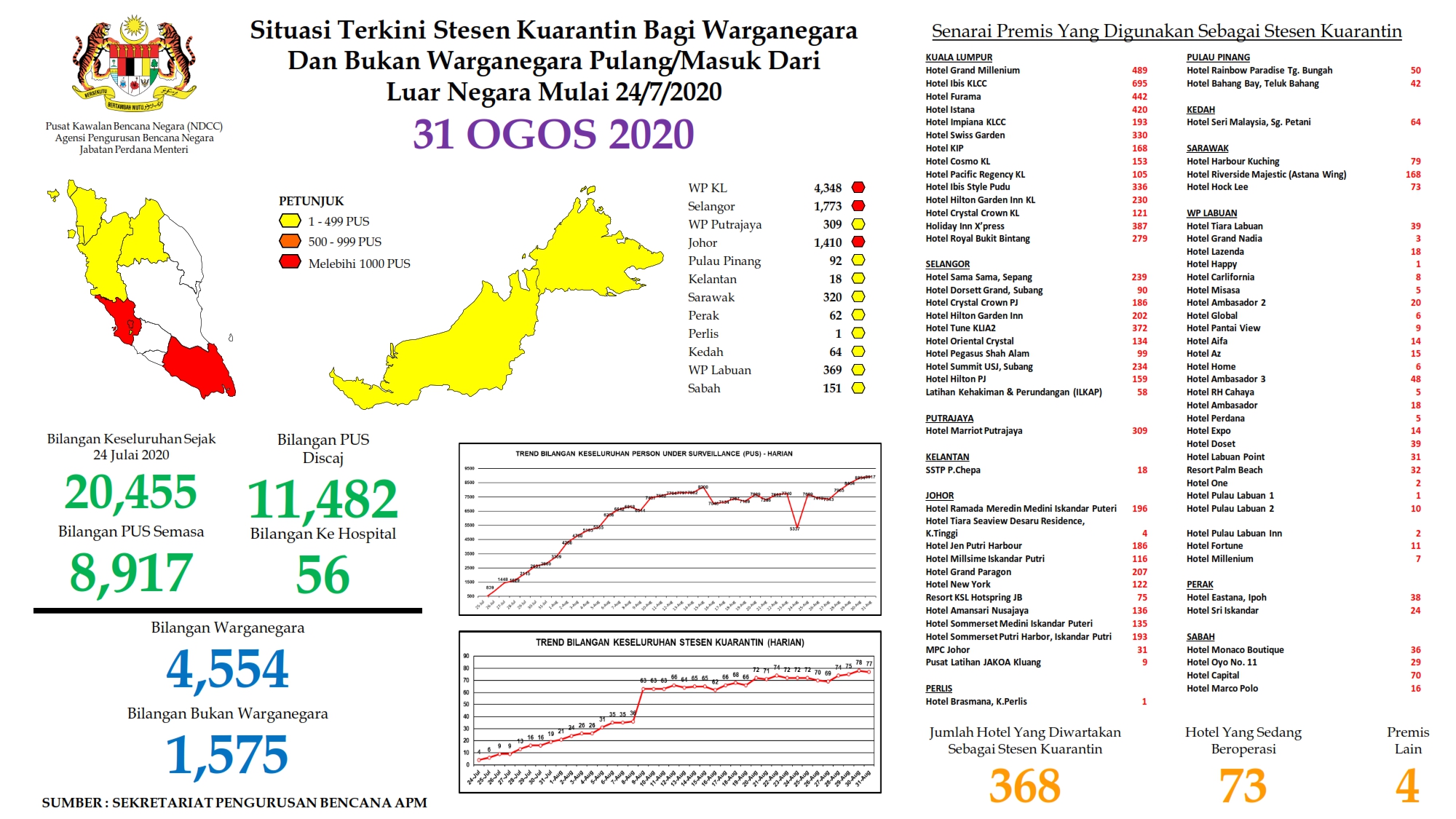 Situasi Terkini Stesen Kuarantin Warganegara Malaysia Pulang Dari Luar Negara 31/08/2020 Asrul Siaran Media 31 August 2020 Hits: 833 Rating: ( 0 Rating ) Please Rate Vote 1 Vote 2 Vote 3 Vote 4 Vote 5 Lihat / Muat Turun PDF Facebook Twitter Prev Next