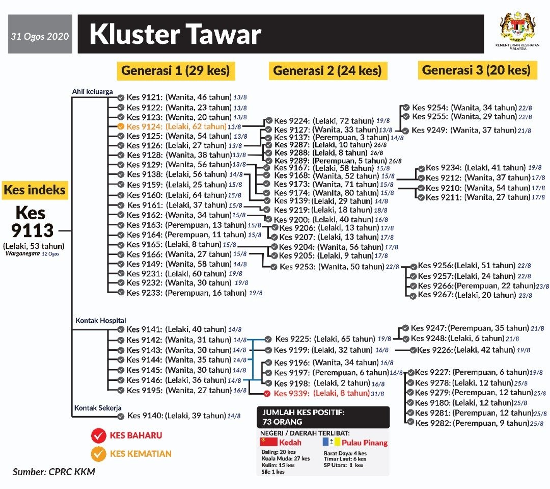 Perincian Kluster Tawar 31/08/2020 Asrul Siaran Media 31 August 2020 Hits: 575 Rating: ( 0 Rating ) Please Rate Vote 1 Vote 2 Vote 3 Vote 4 Vote 5 Facebook Twitter Prev Next