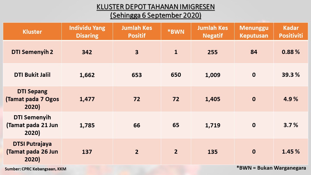 Laporan Saringan DEPOT Tahanan Imigresen Di Malaysia 06/09/2020 Aiman Siaran Media 06 September 2020 Hits: 672 Rating: ( 0 Rating ) Please Rate Vote 1 Vote 2 Vote 3 Vote 4 Vote 5 /images/ndcc/documents/covid19/siaranmedia202009/SIARAN_MEDIA_KKM_20200906_12.jpg Facebook Twitter Prev Next