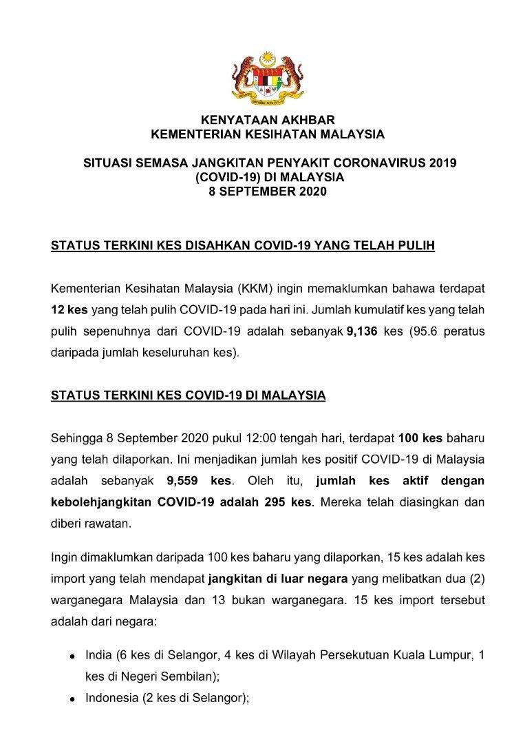 Kenyataan Akhbar KP KKM 08/09/2020 0500 PM Aiman Siaran Media 08 September 2020 Hits: 1155 Rating: ( 0 Rating ) Please Rate Vote 1 Vote 2 Vote 3 Vote 4 Vote 5 Facebook Twitter Prev Next