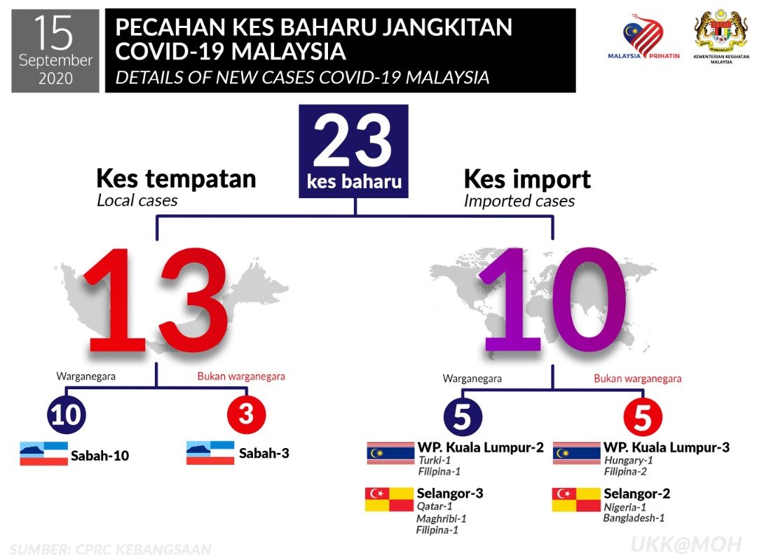 Statistik Pecahan Kes Baharu Jangkitan COVID-19 Malaysia 15/09/2020 Aiman Siaran Media 15 September 2020 Hits: 781 Rating: ( 0 Rating ) Please Rate Vote 1 Vote 2 Vote 3 Vote 4 Vote 5 Lihat / Muat Turun JPG Facebook Twitter Prev Next