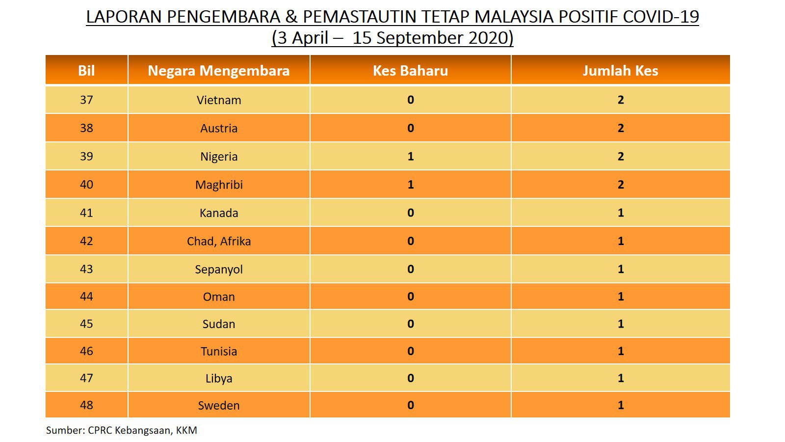 Laporan Pengembara & Pemastautin Tetap Malaysia Positif COVID-19 15/09/2020 Aiman Siaran Media 15 September 2020 Hits: 814 Rating: ( 0 Rating ) Please Rate Vote 1 Vote 2 Vote 3 Vote 4 Vote 5 Facebook Twitter Prev Next