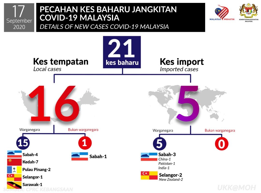 Statistik Pecahan Kes Baharu Jangkitan COVID-19 Malaysia 17/09/2020 Aiman Siaran Media 17 September 2020 Hits: 903 Rating: ( 0 Rating ) Please Rate Vote 1 Vote 2 Vote 3 Vote 4 Vote 5 Lihat / Muat Turun JPG Facebook Twitter Prev Next