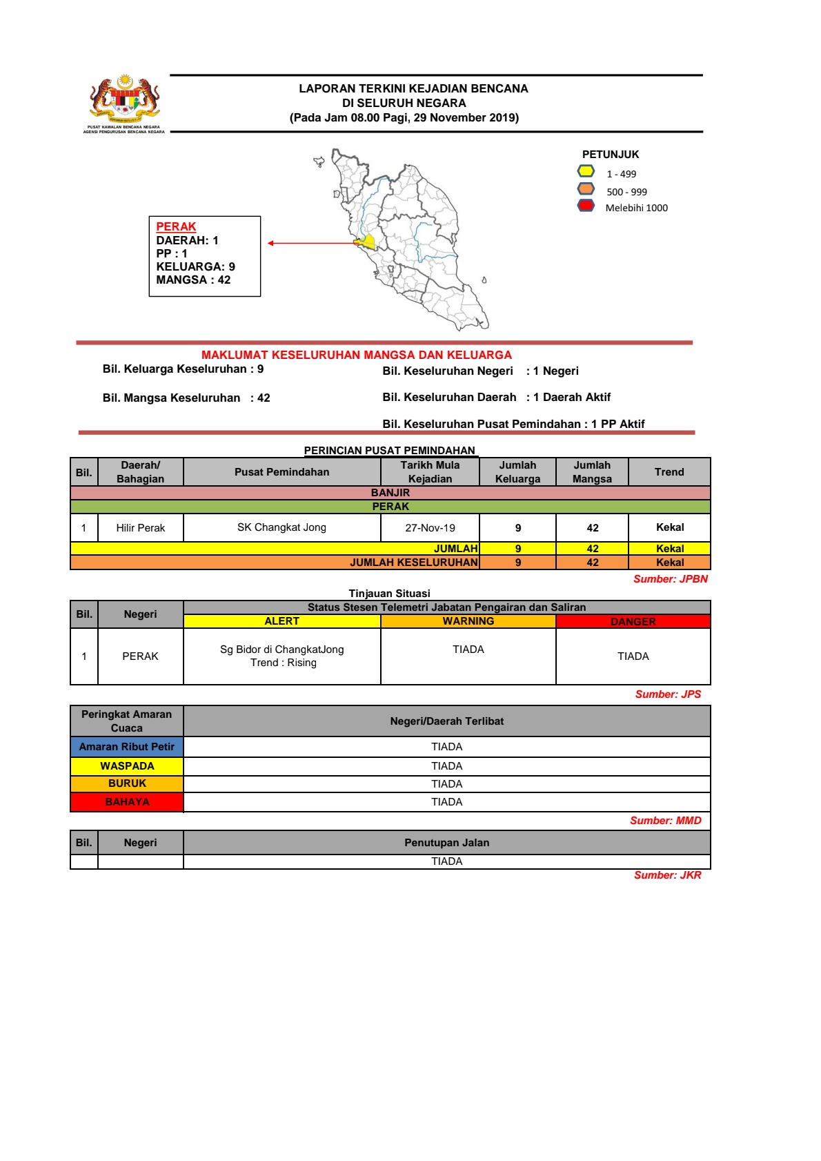 Print Laporan Situasi Bencana 29/11/2019 0800 AM Asrul Laporan Situasi 29 November 2019 Muat Turun PDF Muat Turun JPG Facebook Twitter Prev Next