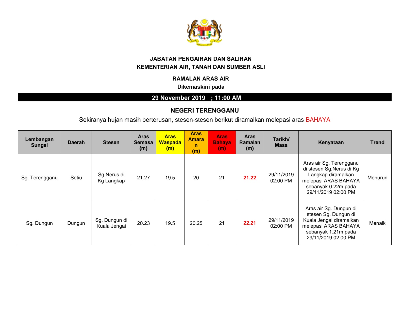Ramalan Aras Air 29/11/2019 1100 AM Asrul Cuaca 29 November 2019 Hits: 926 Rating: ( 0 Rating ) Please Rate Vote 1 Vote 2 Vote 3 Vote 4 Vote 5 Lihat / Muat Turun PDF Muat Turun JPG 1 Muat Turun JPG 2 Facebook Twitter Prev Next