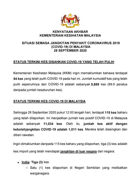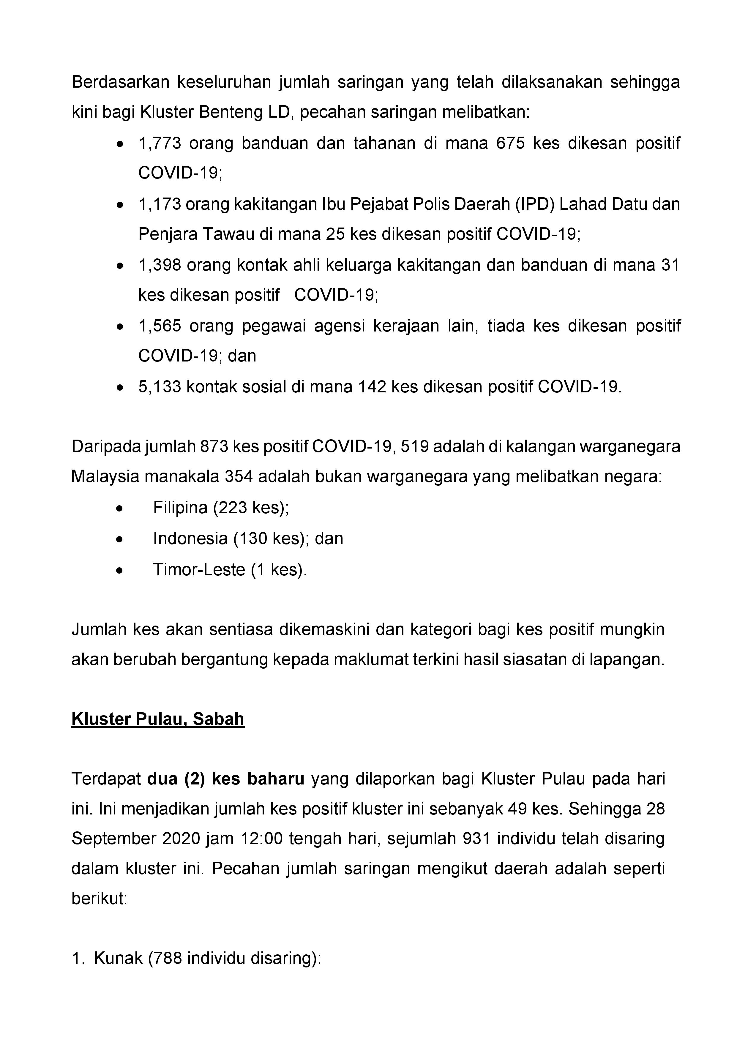 Kenyataan Akhbar KP KKM 28/09/2020 0500 PM Aiman Siaran Media 28 September 2020 Hits: 690 Rating: ( 0 Rating ) Please Rate Vote 1 Vote 2 Vote 3 Vote 4 Vote 5 Facebook Twitter Prev Next