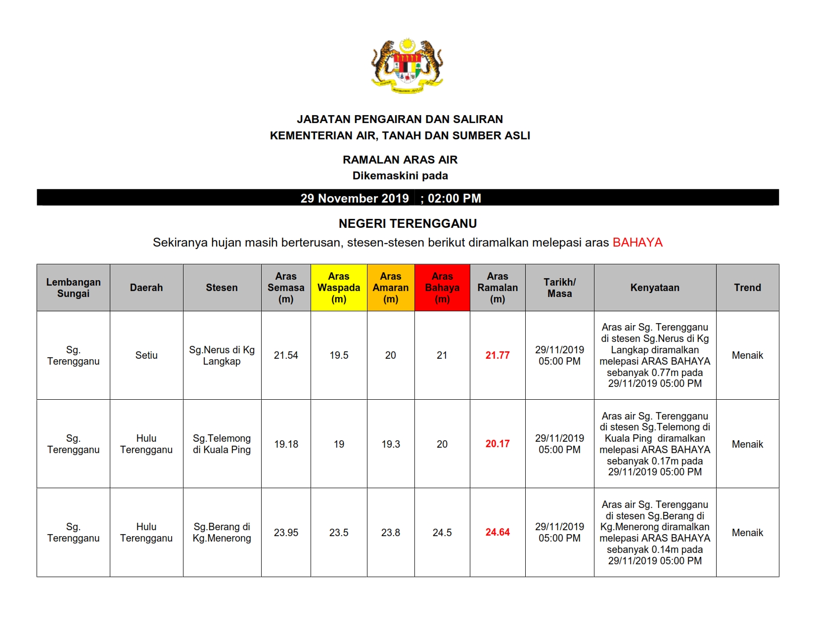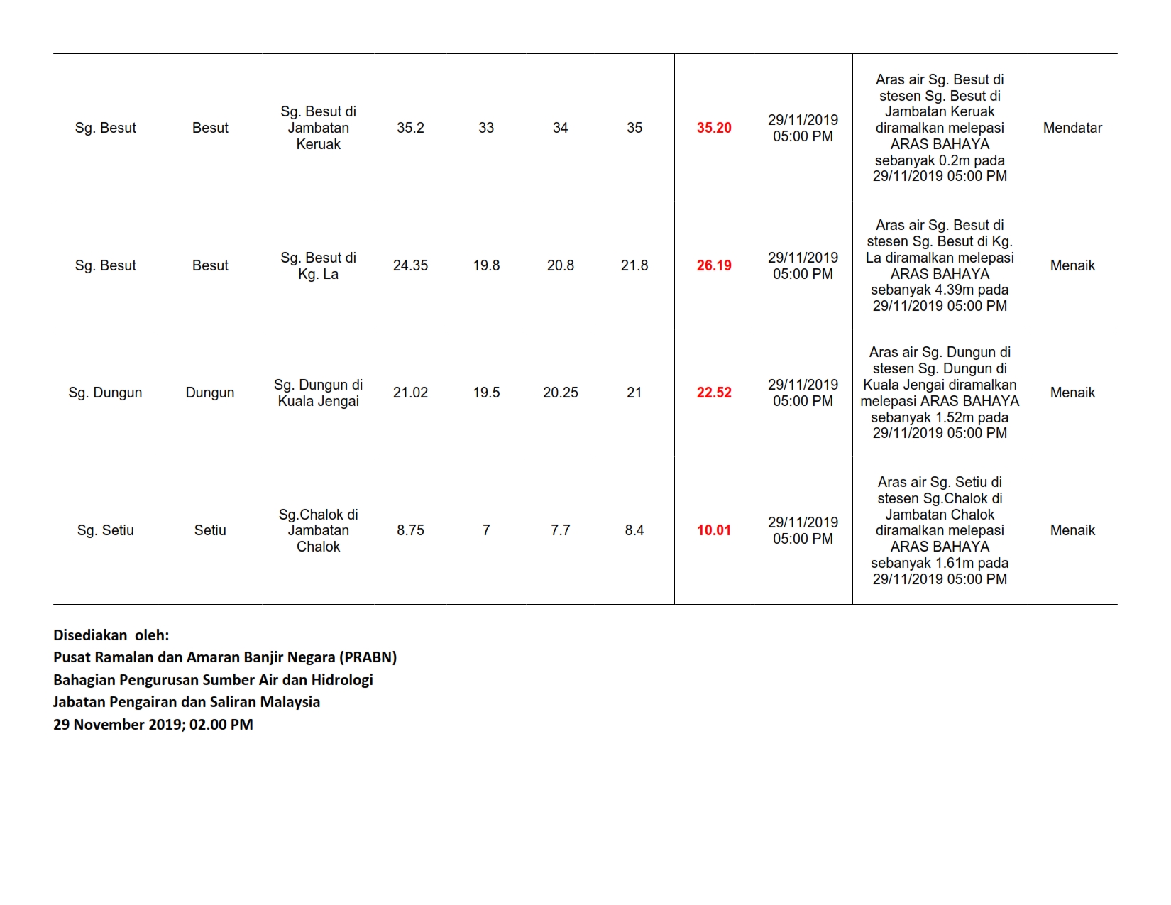 Ramalan Aras Air 29/11/2019 0200 PM Asrul Cuaca 29 November 2019 Hits: 627 Rating: ( 0 Rating ) Please Rate Vote 1 Vote 2 Vote 3 Vote 4 Vote 5 Lihat / Muat Turun PDF Muat Turun JPG 1 Muat Turun JPG 2 Facebook Twitter Prev Next