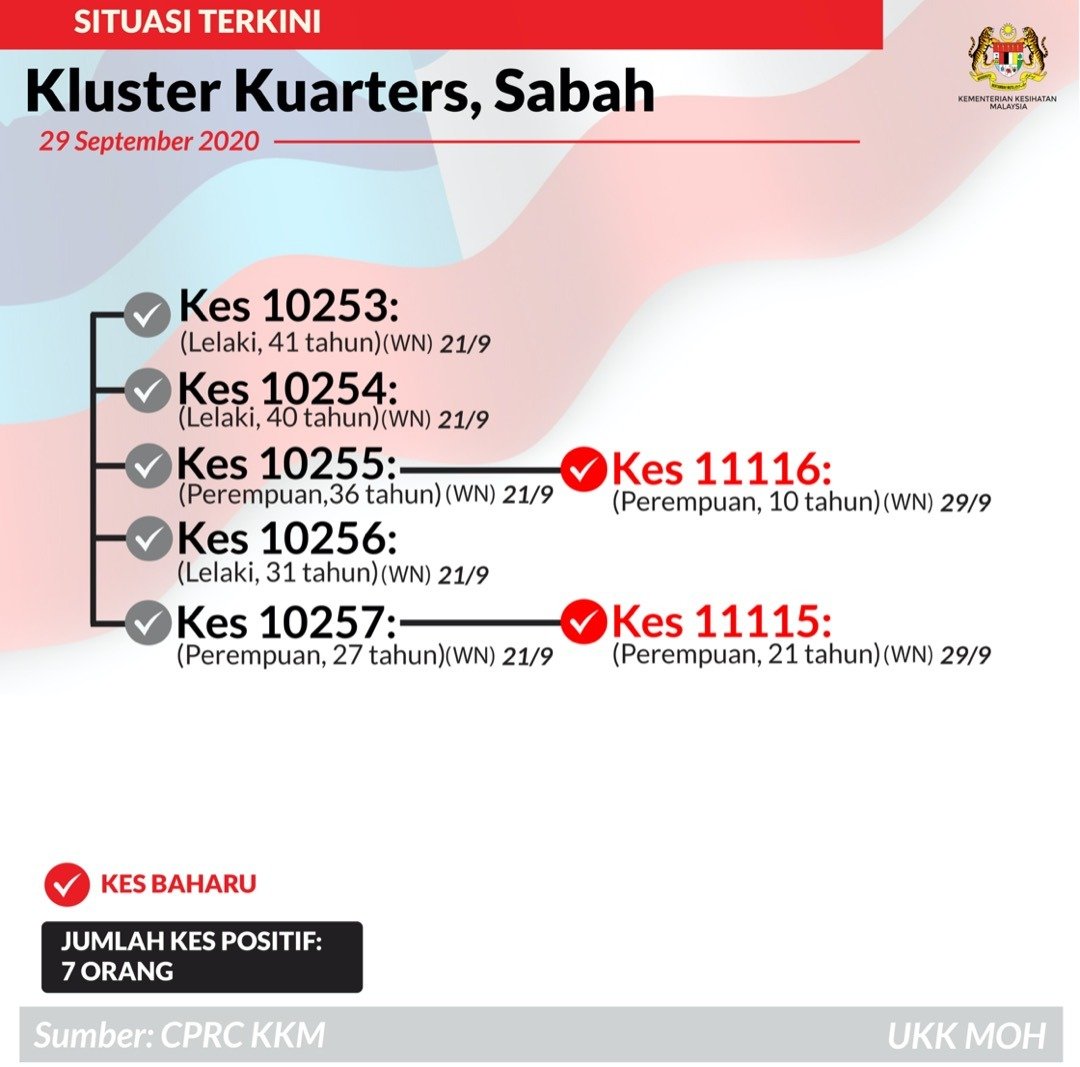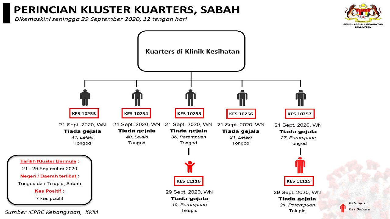 Perincian Kluster Kuarters, Sabah 29/09/2020 Aiman Siaran Media 29 September 2020 Hits: 1022 Rating: ( 0 Rating ) Please Rate Vote 1 Vote 2 Vote 3 Vote 4 Vote 5 Lihat / Muat Turun JPG 1 Lihat / Muat Turun JPG 2 Facebook Twitter Prev Next