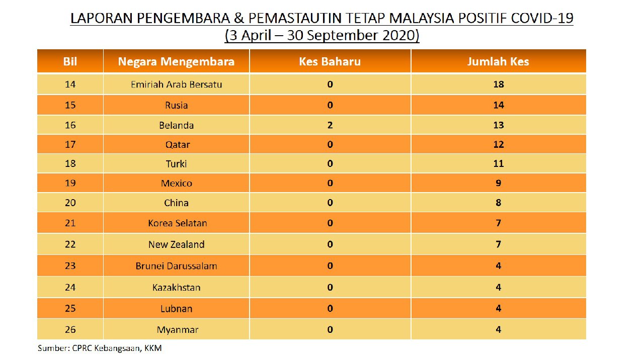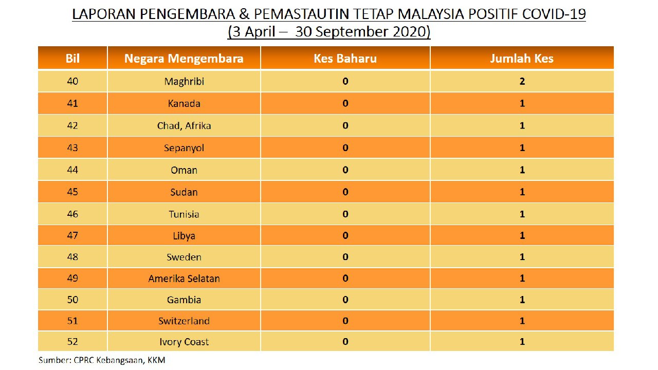 Laporan Pengembara & Pemastautin Tetap Malaysia Positif COVID-19 30/09/2020 Aiman Siaran Media 30 September 2020 Hits: 819 Rating: ( 0 Rating ) Please Rate Vote 1 Vote 2 Vote 3 Vote 4 Vote 5 Facebook Twitter Prev Next