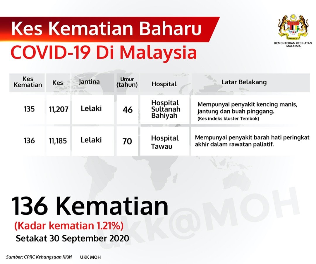 Kes Kematian Baharu COVID-19 Di Malaysia 30/09/2020 Aiman Siaran Media 30 September 2020 Hits: 667 Rating: ( 0 Rating ) Please Rate Vote 1 Vote 2 Vote 3 Vote 4 Vote 5 Lihat / Muat Turun JPG Facebook Twitter Prev Next