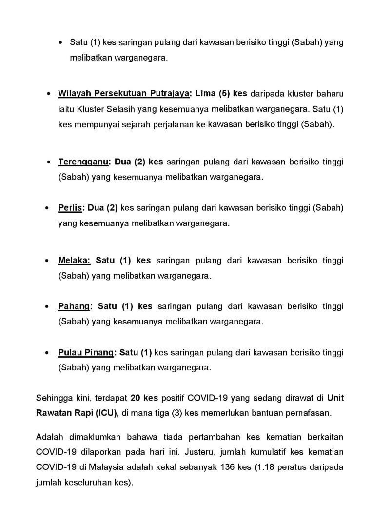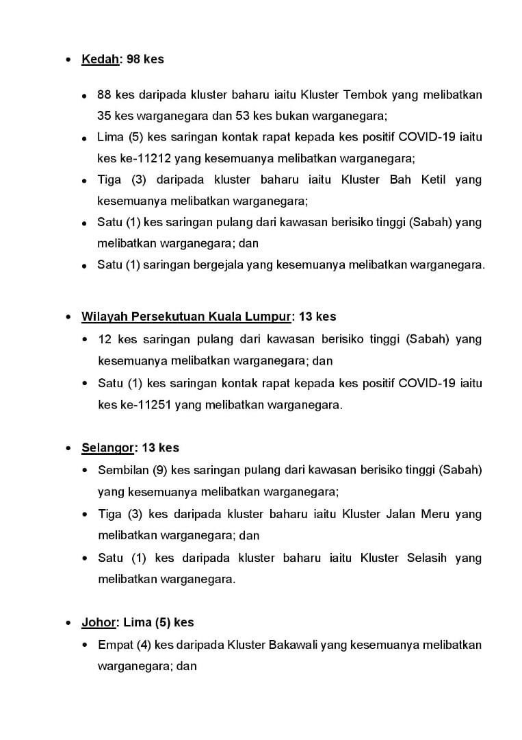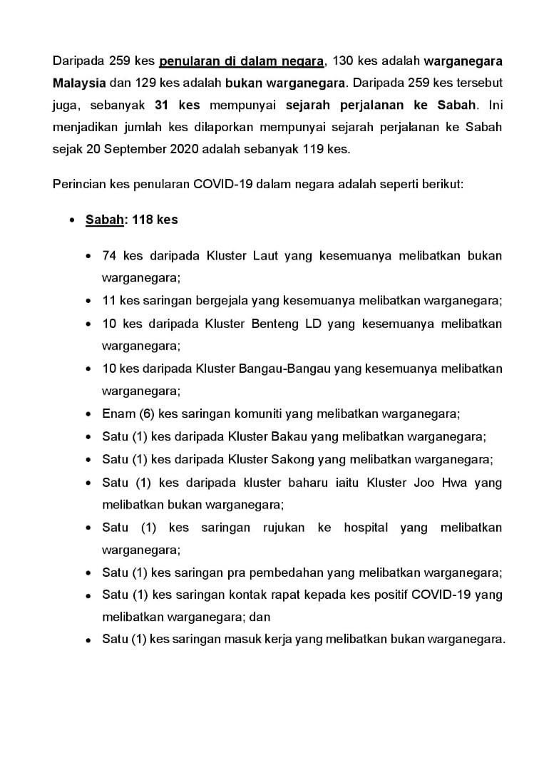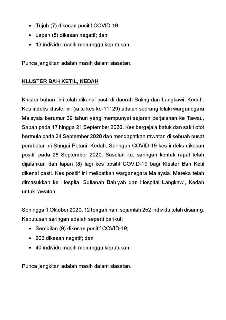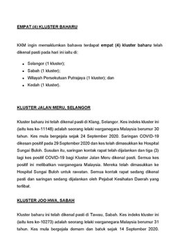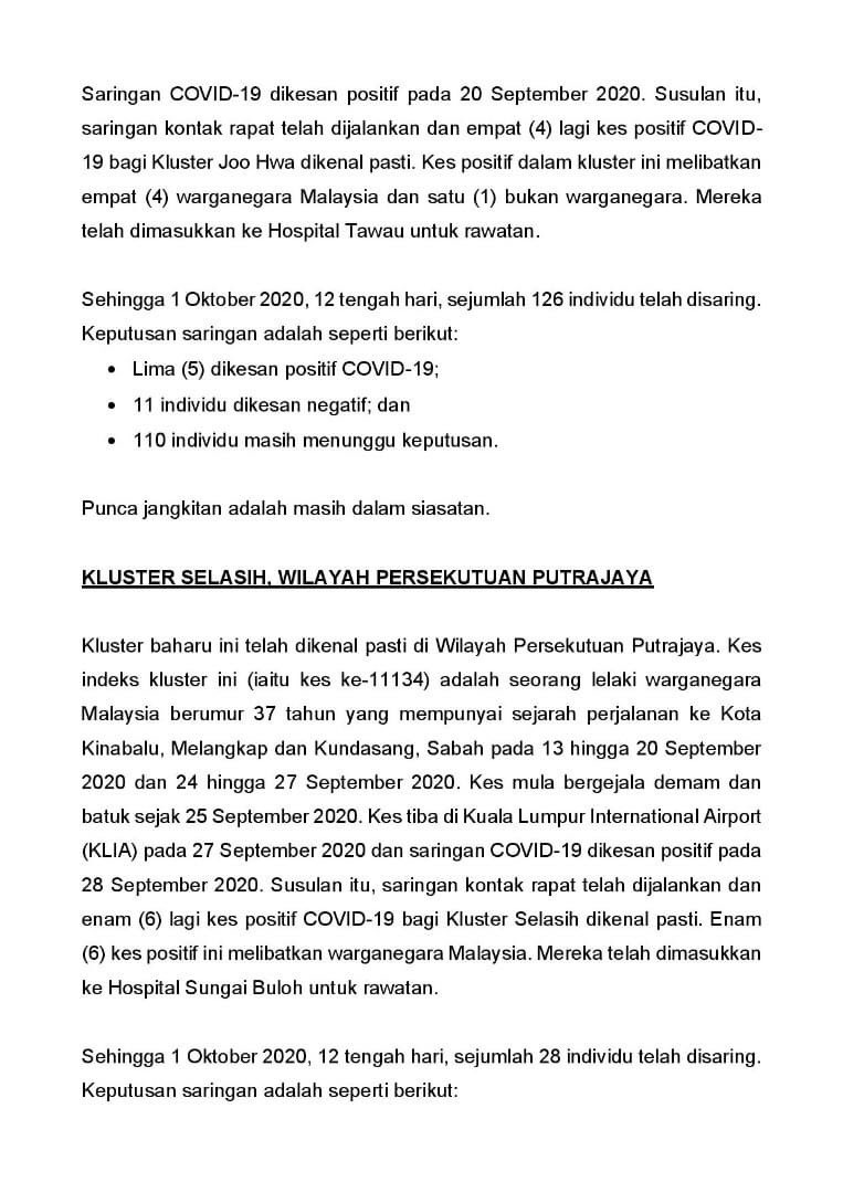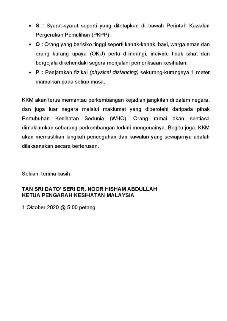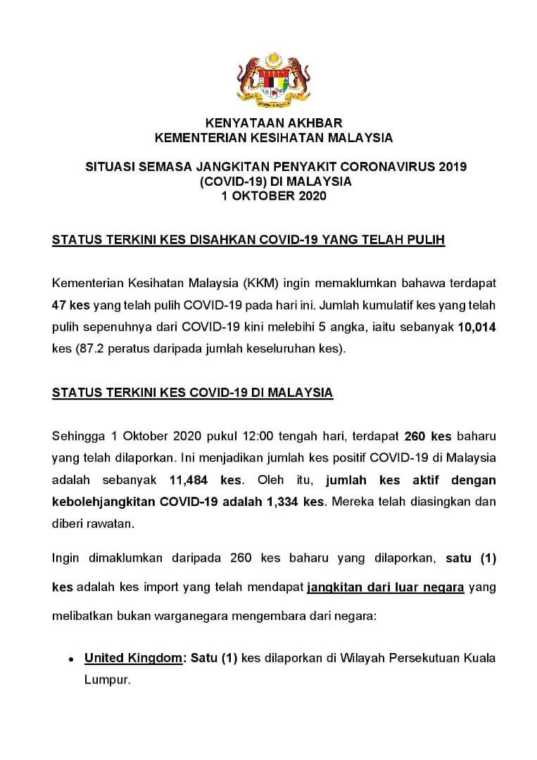 Kenyataan Akhbar Ketua Pengarah KKM 01/10/2020 0500 PM Aiman Siaran Media 01 October 2020 Hits: 707 Rating: ( 0 Rating ) Please Rate Vote 1 Vote 2 Vote 3 Vote 4 Vote 5 Facebook Twitter Prev Next