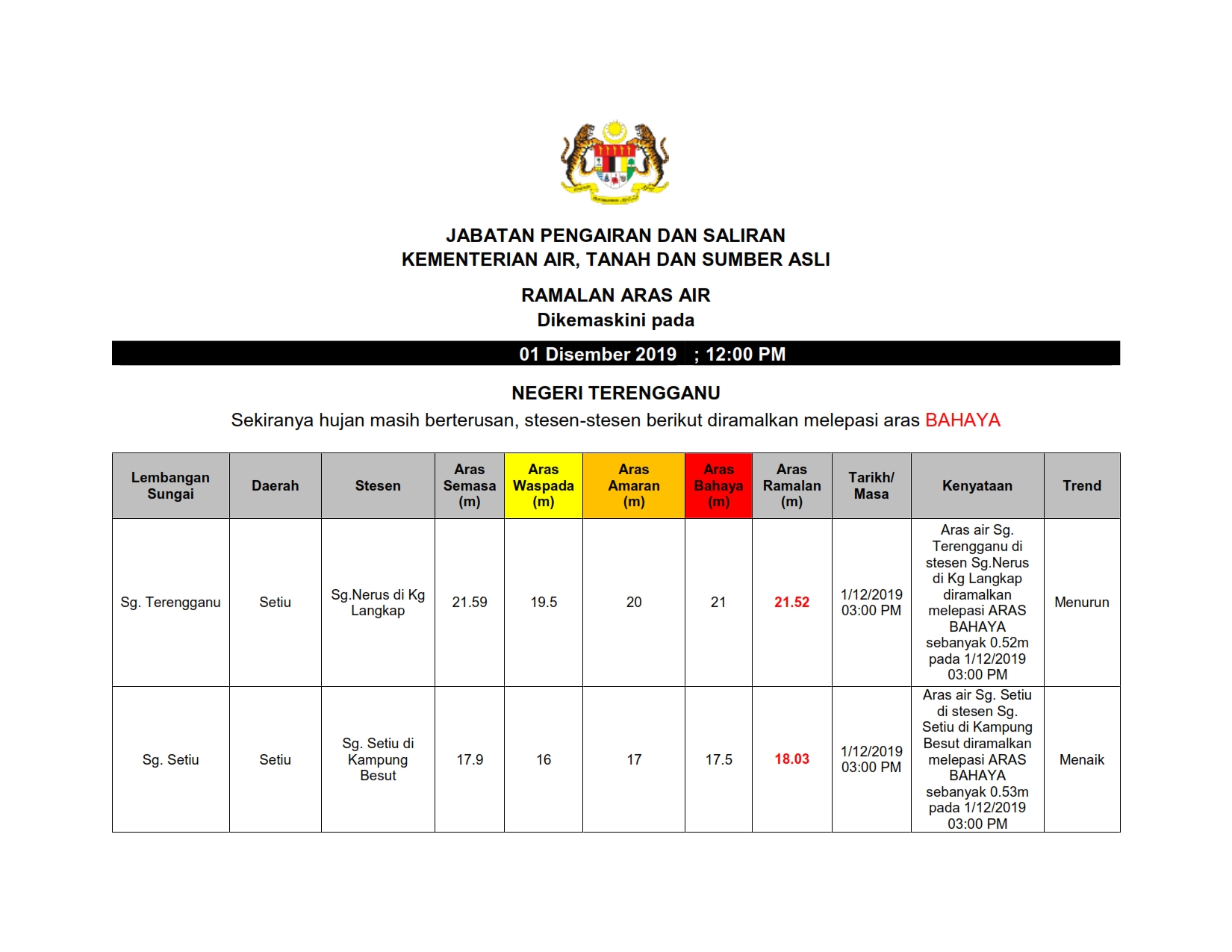 Ramalan Aras Air Terengganu 01/12/2019 1200 PM Aiman Cuaca 01 December 2019 Hits: 883 Rating: ( 0 Rating ) Please Rate Vote 1 Vote 2 Vote 3 Vote 4 Vote 5 Lihat / Muat Turun PDF Muat Turun JPG 1 Muat Turun JPG 2 Facebook Twitter Prev Next
