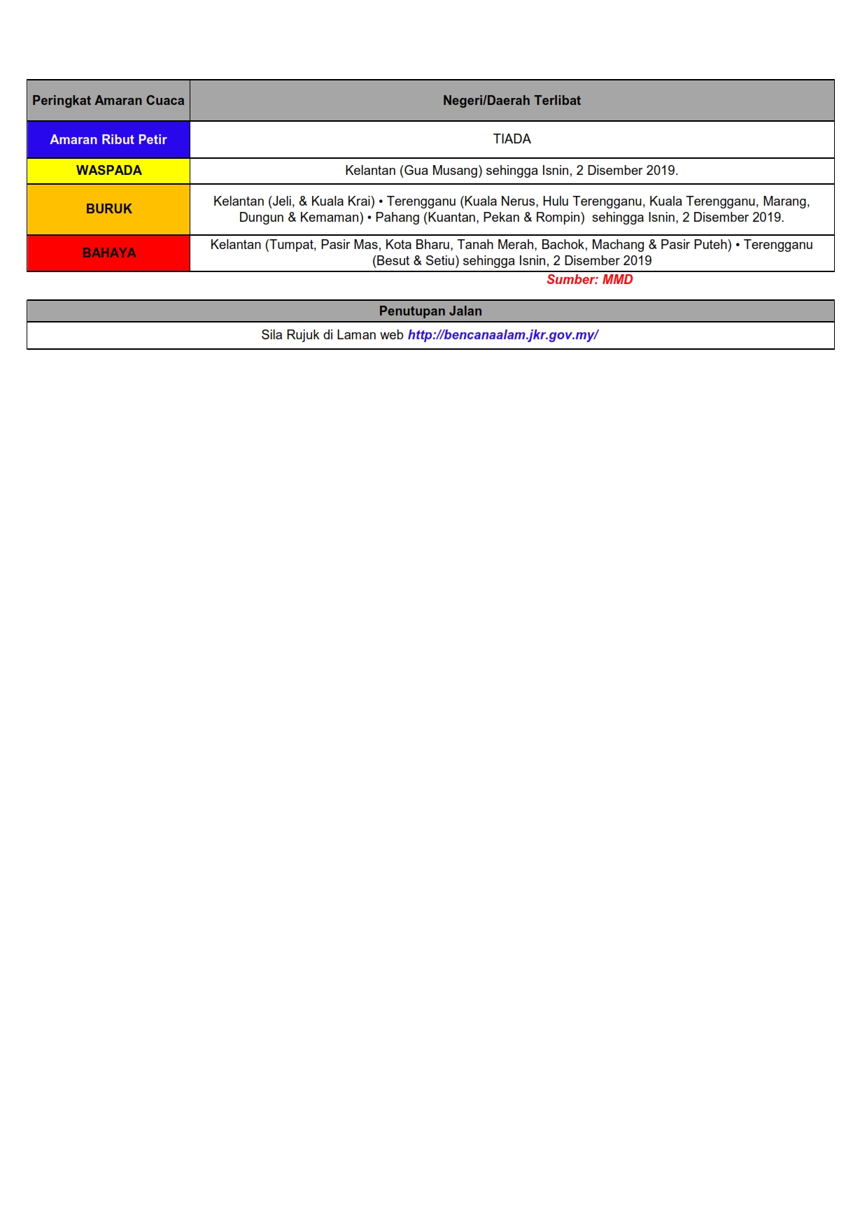 Print Laporan Situasi Bencana 02/12/2019 0400 AM Asrul Laporan Situasi 02 December 2019 Muat Turun PDF Muat Turun JPG 1 Muat Turun JPG 2 Facebook Twitter Prev Next