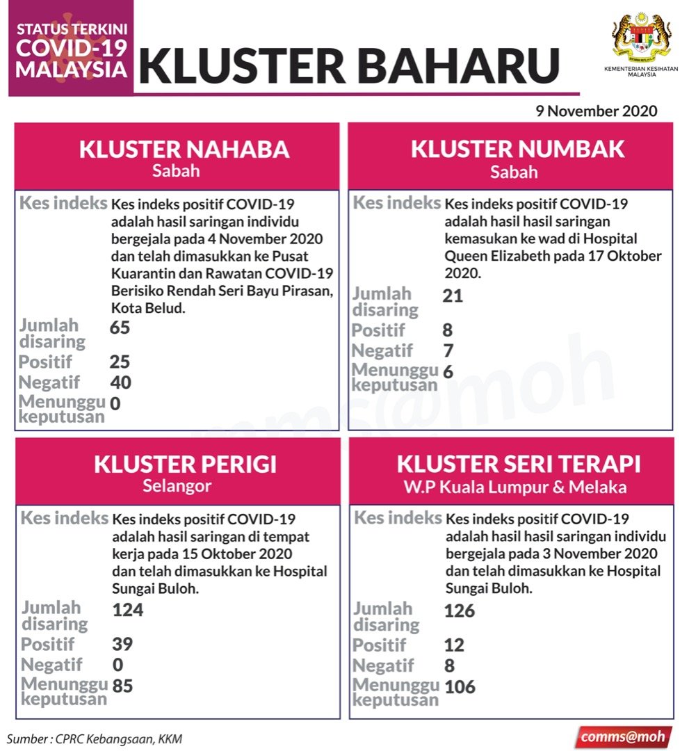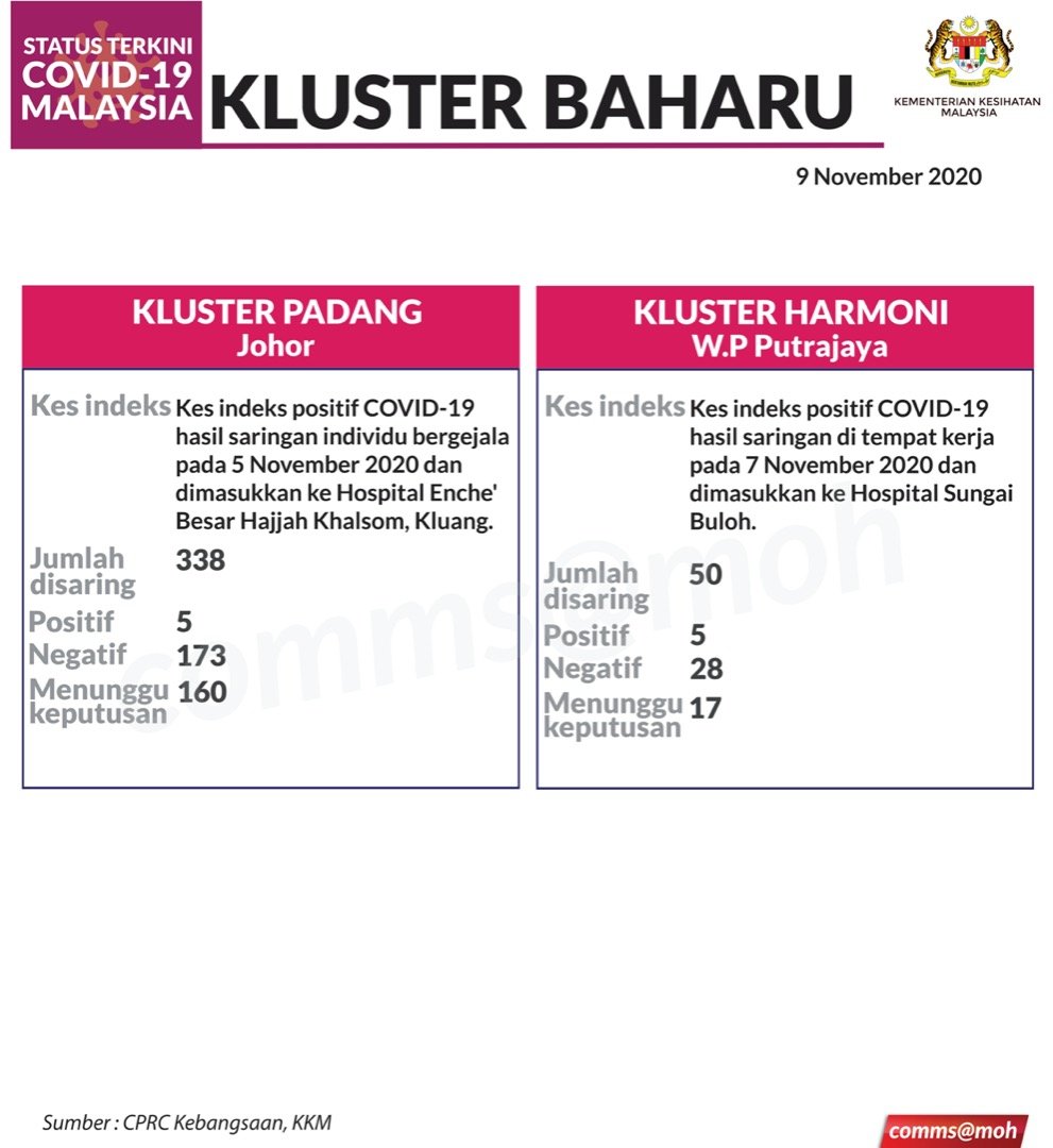 Situasi Terkini Kluster Baharu Covid-19 09/11/2020 Aiman Siaran Media 09 November 2020 Hits: 617 Rating: ( 0 Rating ) Please Rate Vote 1 Vote 2 Vote 3 Vote 4 Vote 5 Lihat / Muat Turun JPG 1 Lihat / Muat Turun JPG 2 Facebook Twitter Prev Next
