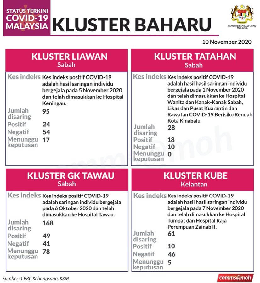 Situasi Terkini Kluster Baharu Covid-19 10/11/2020 Aiman Siaran Media 10 November 2020 Hits: 494 Rating: ( 0 Rating ) Please Rate Vote 1 Vote 2 Vote 3 Vote 4 Vote 5 Lihat / Muat Turun JPG 1 Facebook Twitter Prev Next
