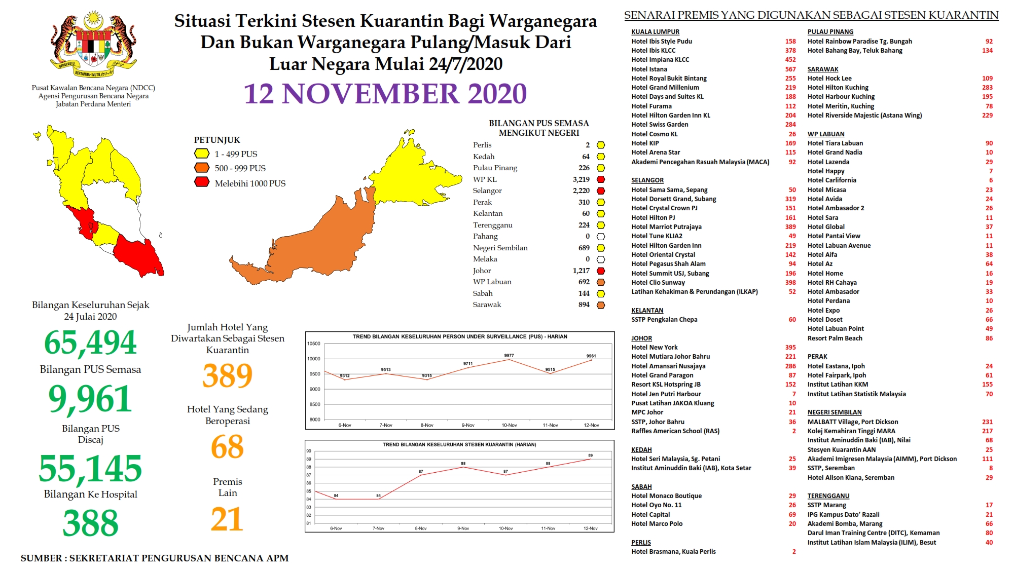 Situasi Terkini Stesen Kuarantin Bagi Warganegara Dan Bukan Warganegara Pulang/Masuk Dari Luar Negara 12/11/2020 Aiman Siaran Media 12 November 2020 Hits: 741 Rating: ( 0 Rating ) Please Rate Vote 1 Vote 2 Vote 3 Vote 4 Vote 5 Lihat / Muat Turun PDF Facebook Twitter Prev Next