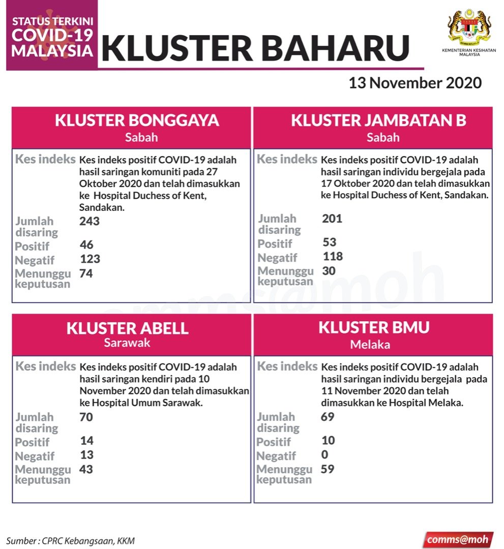 Situasi Terkini Kluster Baharu Covid-19 13/11/2020 Aiman Siaran Media 13 November 2020 Hits: 965 Rating: ( 0 Rating ) Please Rate Vote 1 Vote 2 Vote 3 Vote 4 Vote 5 Lihat / Muat Turun JPG 1 Facebook Twitter Prev Next